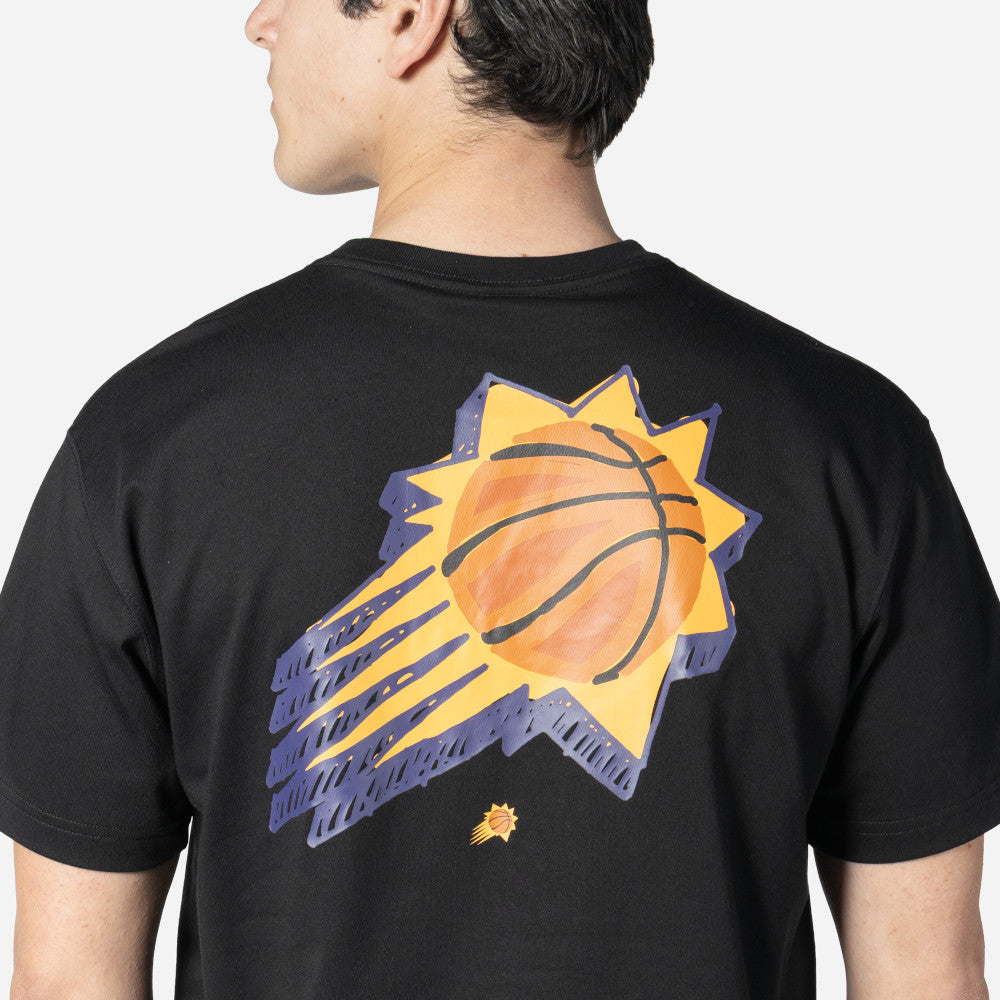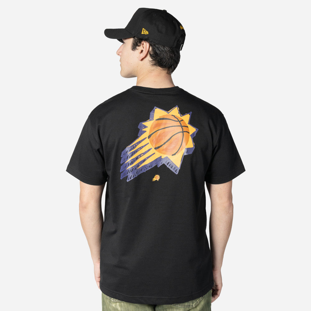 Esta Playera Manga Corta New Era de Phoenix Suns de la colección NBA Doodles presenta el nombre de los Suns en la parte frontal, el logotipo del equipo con diseño de dibujo estampado en grande al reverso acompañado de su versión normal en pequeño y el flag de New Era bordado en la manga izquierda. Luce con estilo y cómprala ya.
