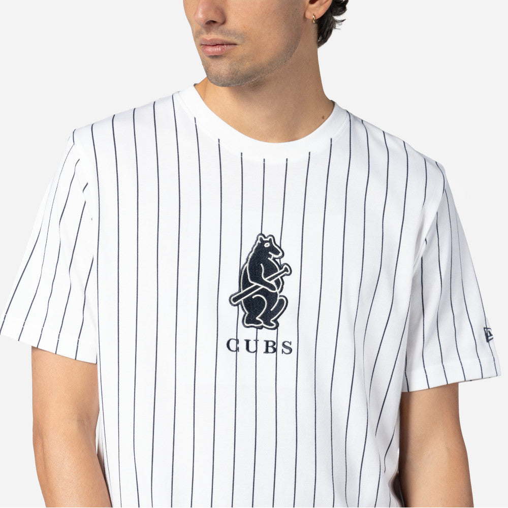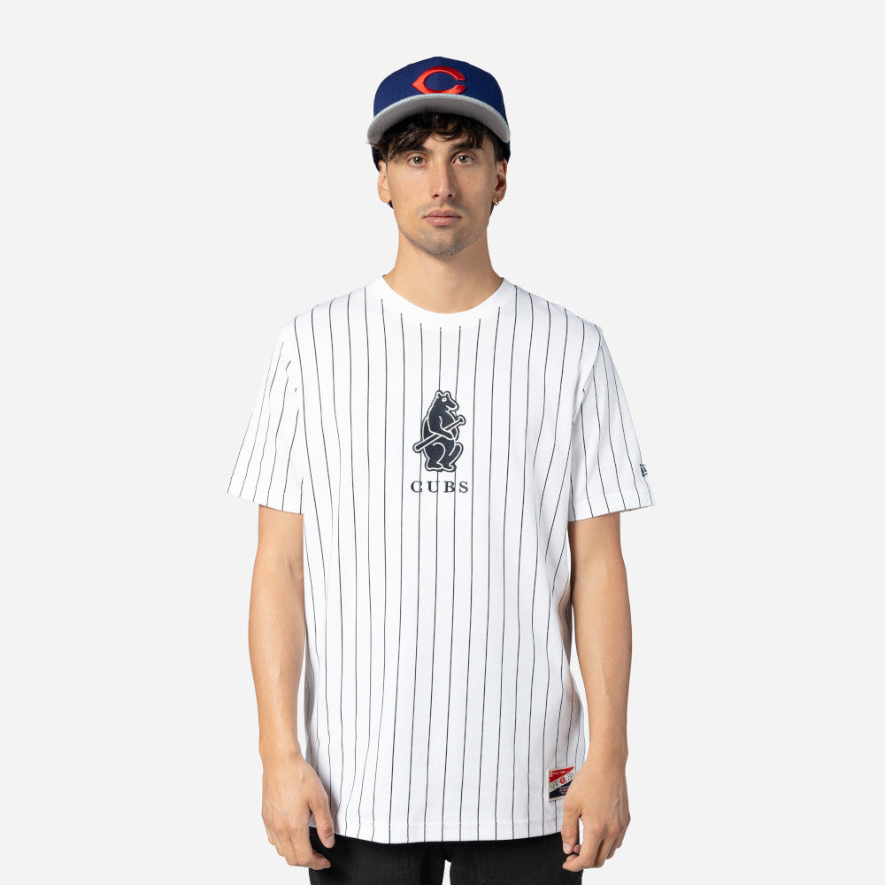 Esta Playera Manga Corta New Era de Chicago Cubs de la colección MLB Throwback presenta un diseño a rayas con el logotipo y nombre de los Cubs en la parte frontal y el flag de New Era bordado en la manga izquierda. Cómprala ya.