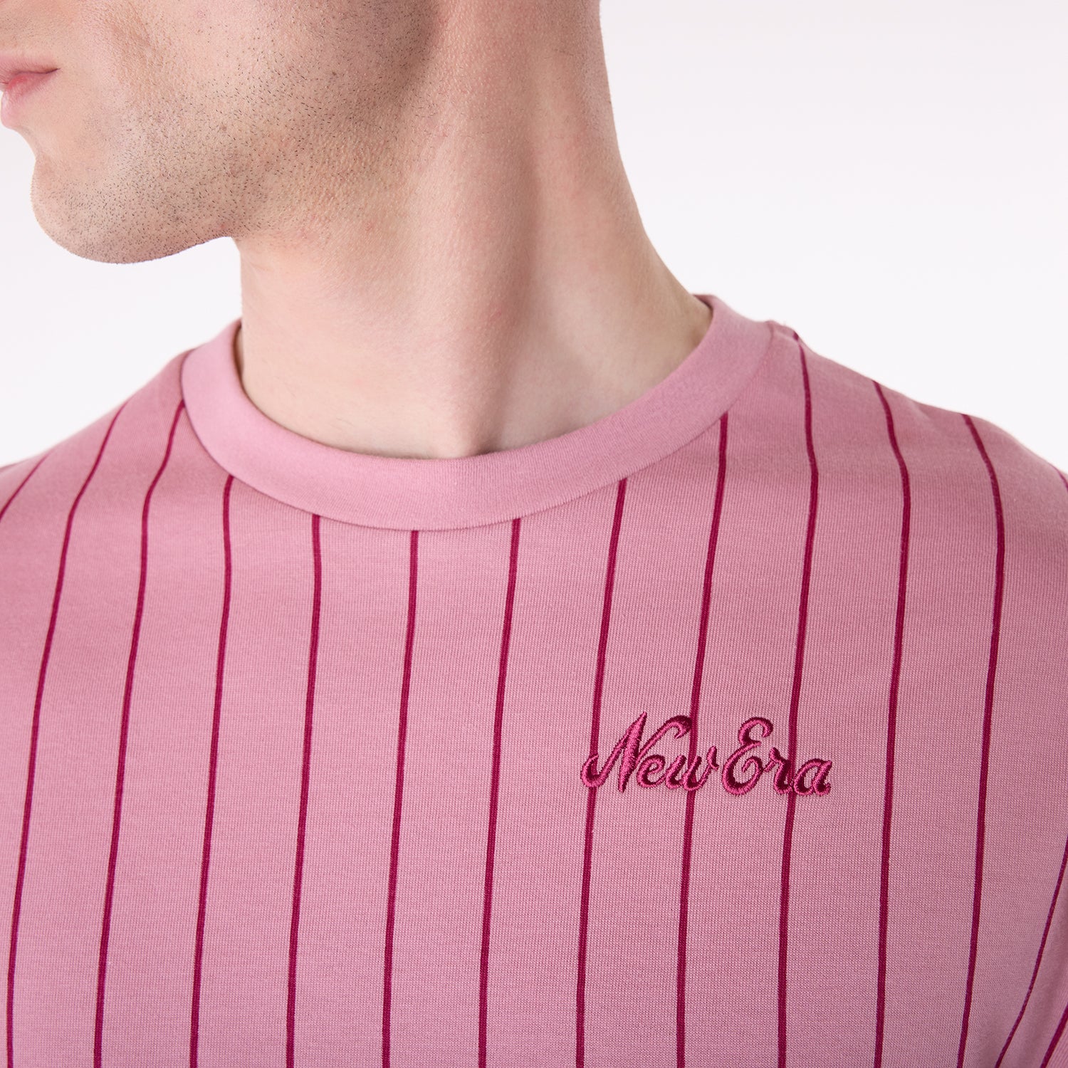 Esta Playera Manga Corta New Era de la colección New Era Script presenta un diseño a rayas con el script de New Era bordado en la parte frontal y el flag de New Era bordado en manga izquierda. Luce con estilo y cómprala ya.