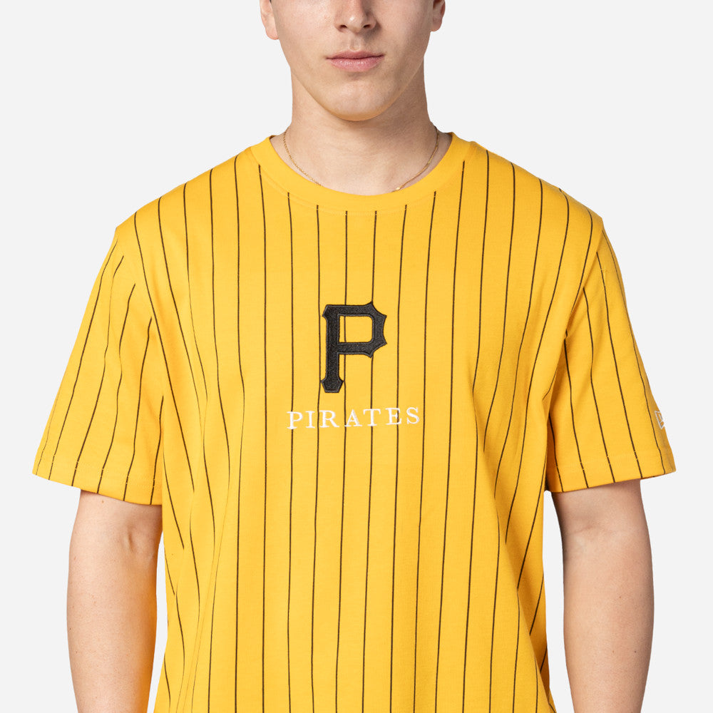 Esta Playera Manga Corta New Era de Pittsburgh Pirates de la colección MLB Throwback presenta un diseño a rayas con el logotipo y nombre de los Pirates en la parte frontal y el flag de New Era bordado en la manga izquierda. Cómprala ya.