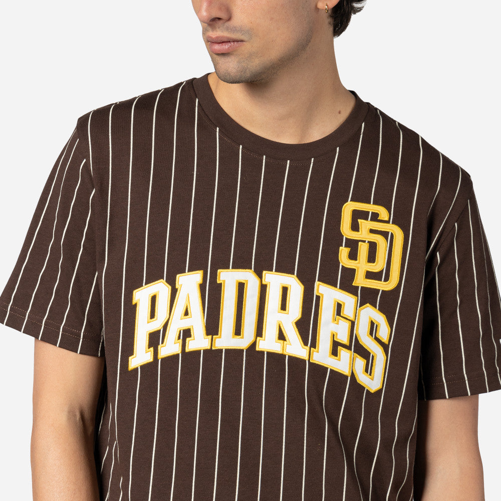 Esta Playera Manga Corta New Era de San Diego Padres de la colección MLB Throwback presenta un diseño a rayas con el logotipo de los Padres en la parte frontal izquierda junto con el nombre del equipo en el centro y el flag de New Era bordado en la manga izquierda. Cómprala ya.