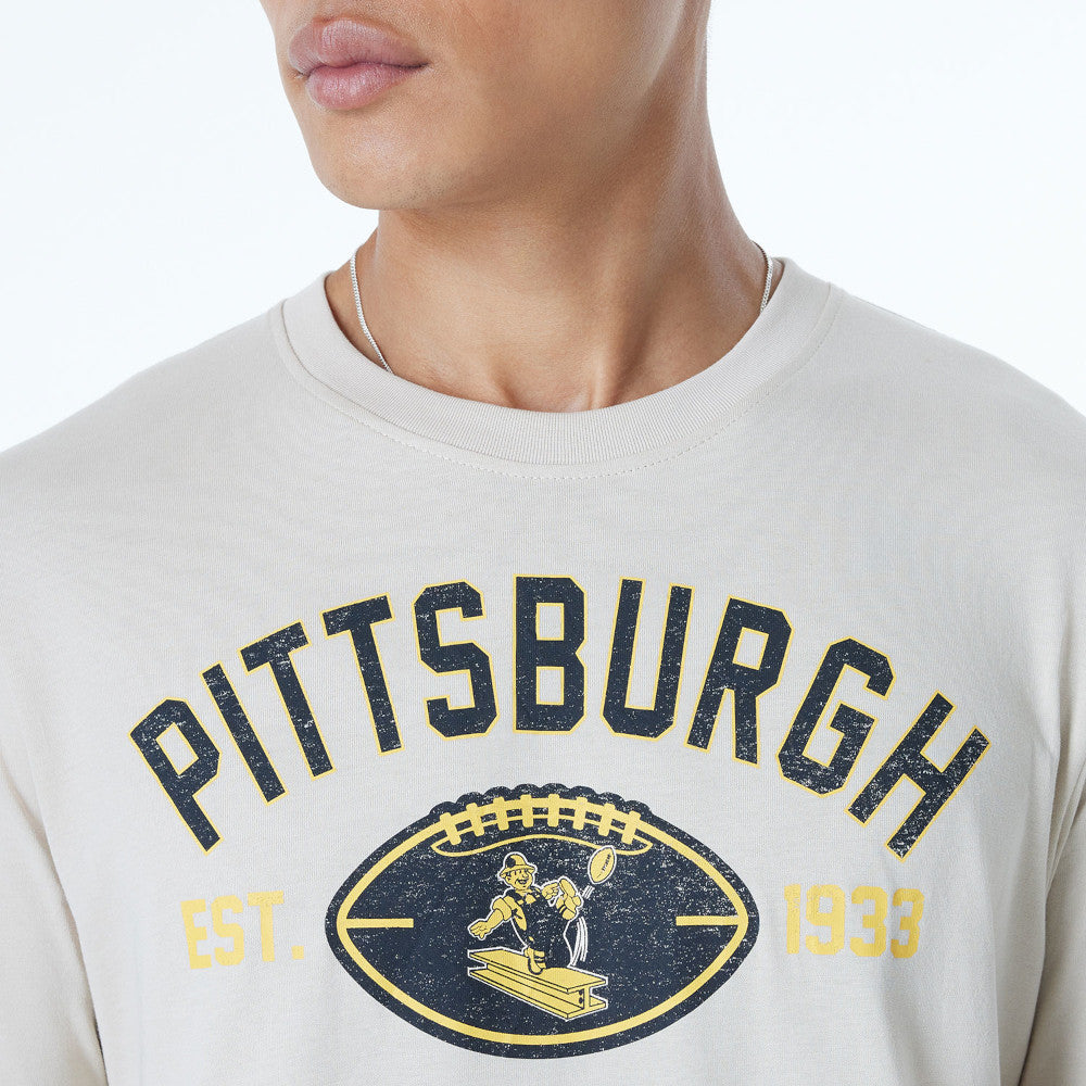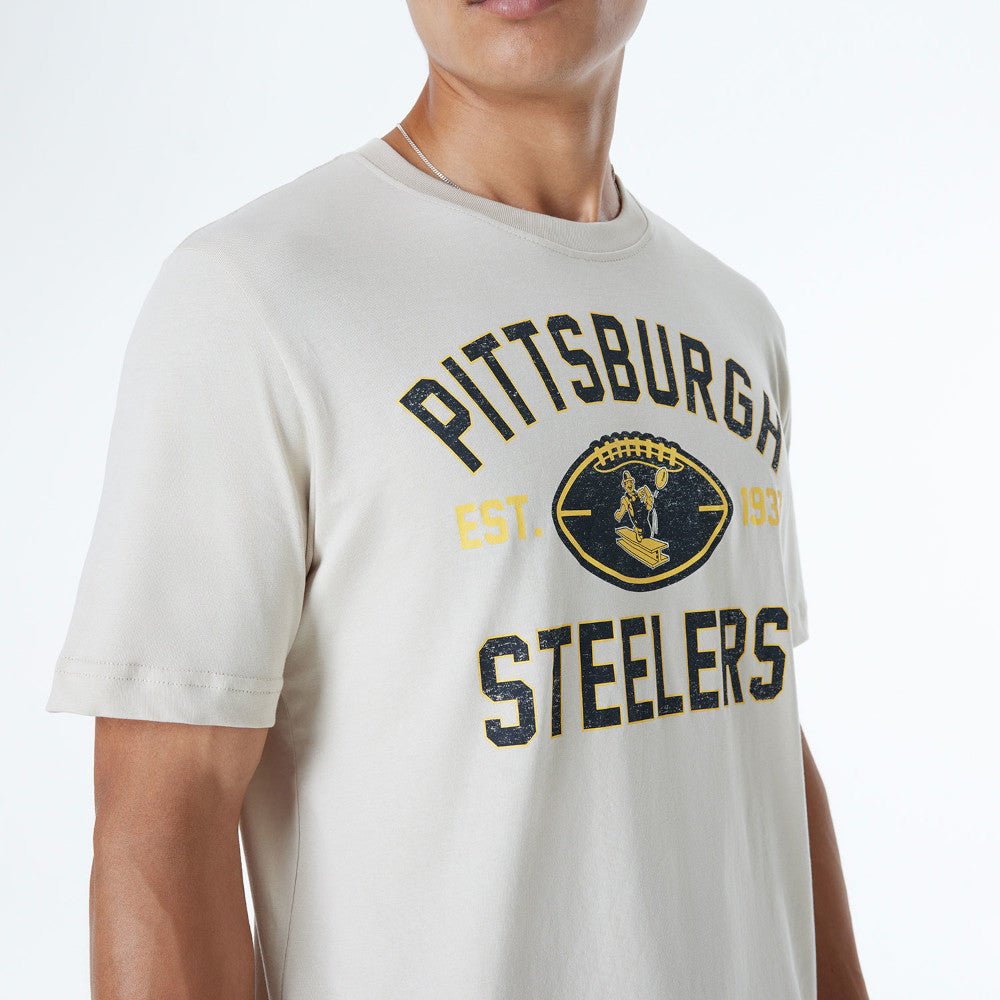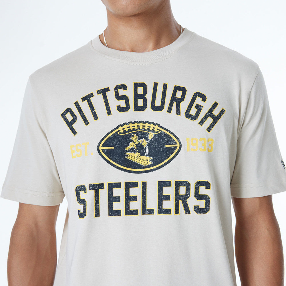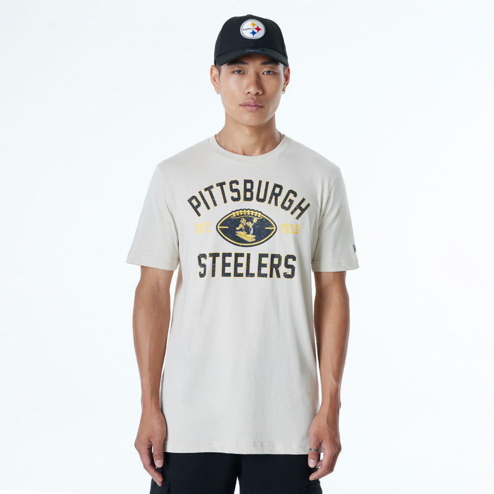 Esta Playera Manga Corta New Era de Pittsburgh Steelers de la colección NFL 3rd Down Historic presenta un diseño con el nombre y dentro de un balón de futbol americano el logotipo retro de los Steelers en la parte frontal y el flag de New Era bordado en la manga izquierda. Luce con estilo y cómprala ya.