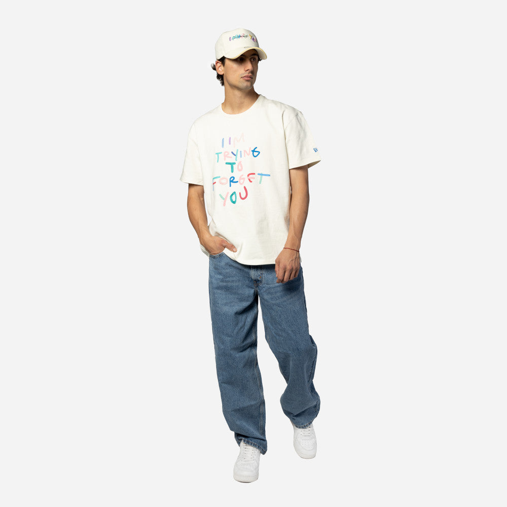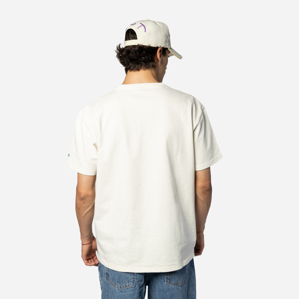 Esta Playera Manga Corta New Era de la colaboración con Ricardo Luévanos presenta un diseño con una frase representativa del artista en la parte frontal y el flag de New Era bordado en la manga izquierda. Luce con estilo y cómprala ya.