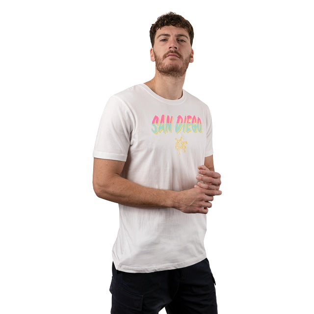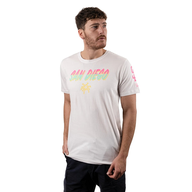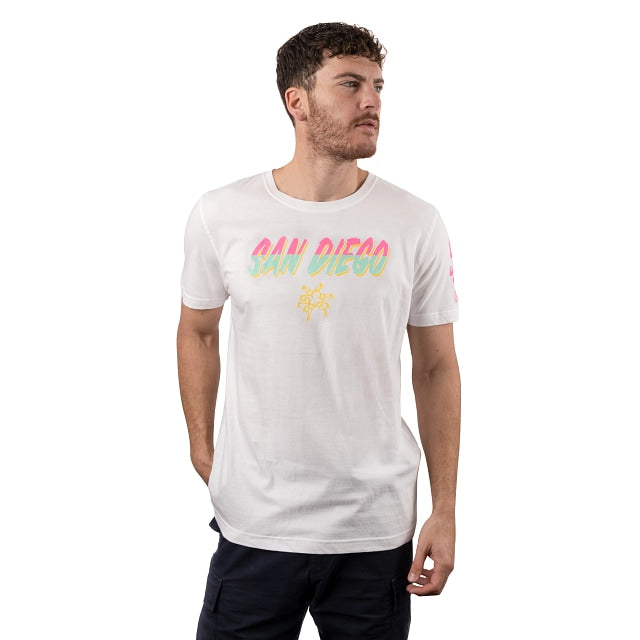 Inspirada en el jersey, city connected. Esta Playera Manga Corta de San Diego Padres City Connect presenta el nombre de San Diego estampado al frente y el logo de los Padres en la manga izquierda. Cómprala ya.