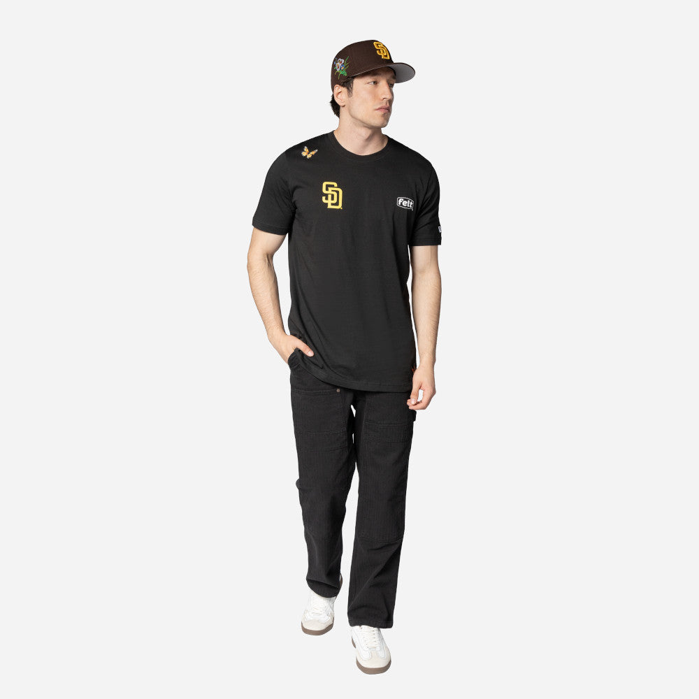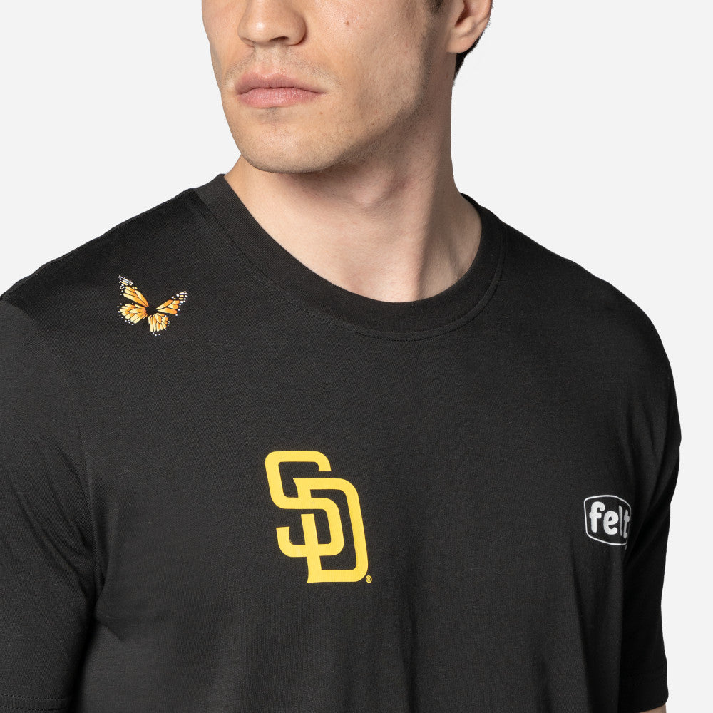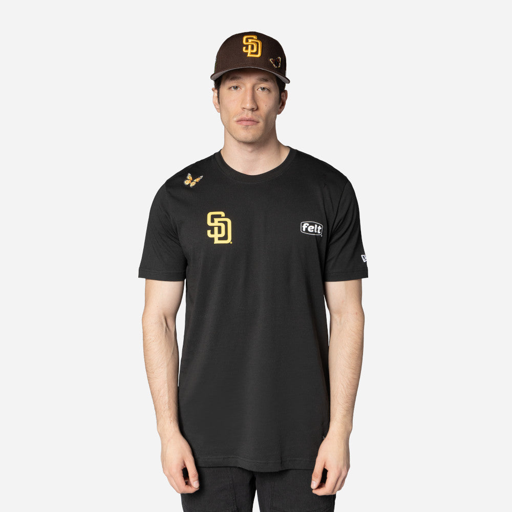 Esta Playera Manga Corta New Era de San Diego Padres de la colección Felt X MLB presenta un diseño con el logotipo de los Padres en la parte frontal derecha, el logo de Felt en la parte frontal izquierda, mariposas en el frente y al reverso y el flag de New Era bordado en la manga izquierda. Completa tu outfit y cómprala ya.