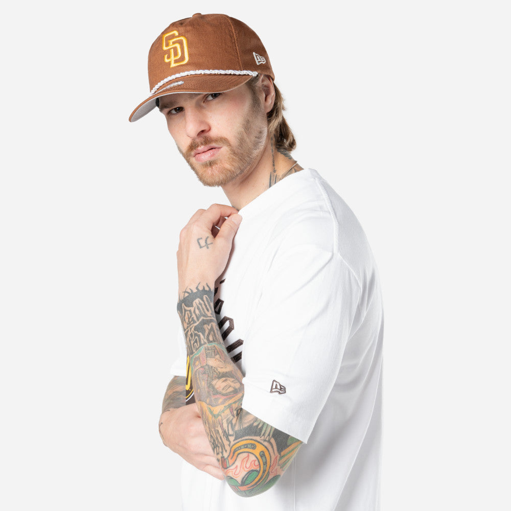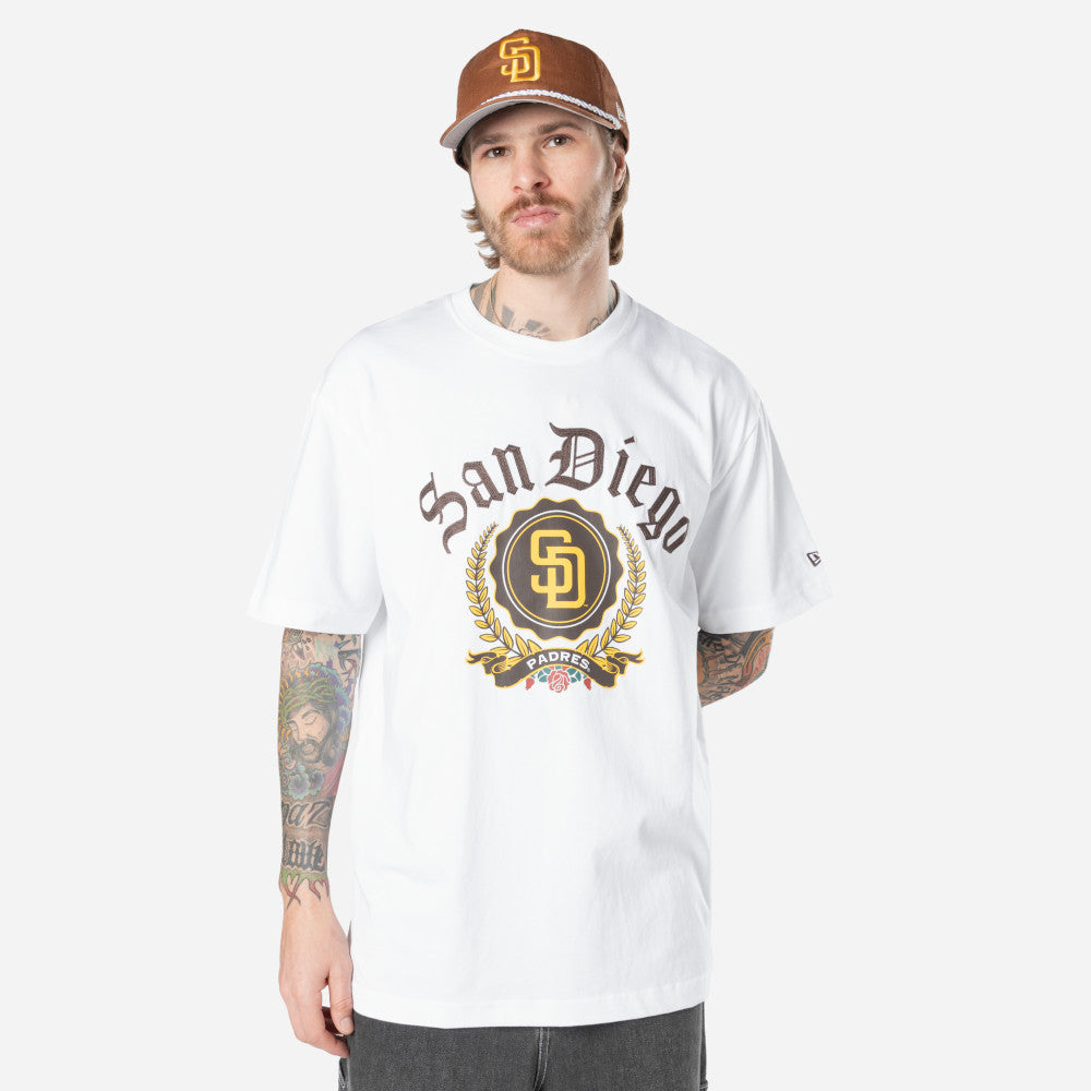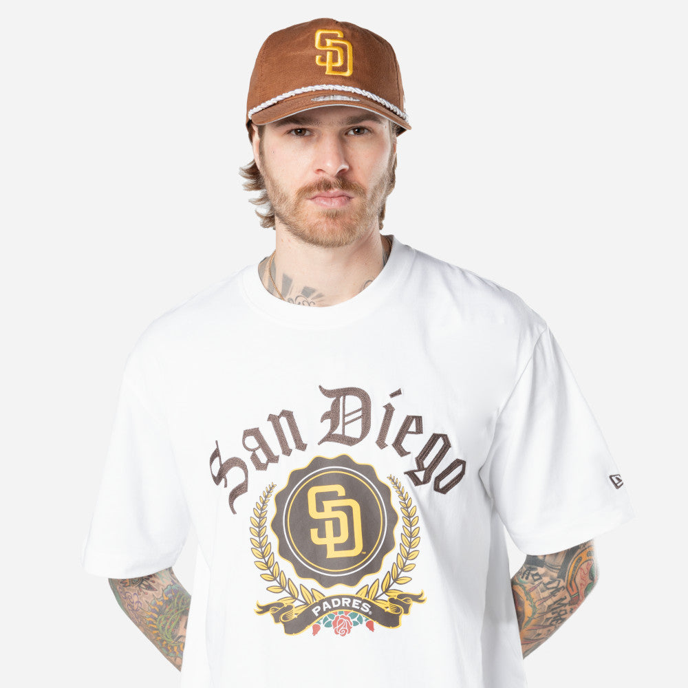 Esta Playera Manga Corta New Era de San Diego Padres de la colección MLB Throwback Prep presenta el nombre de los Padres bordado junto con su logotipo estampado en la parte frontal y el flag de New Era bordado en la manga izquierda. Cómprala ya.