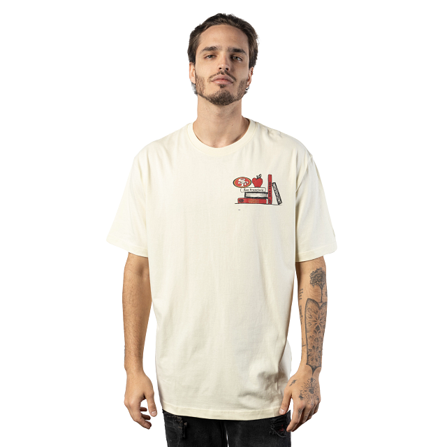 Dale un toque a tu outfit con esta Playera Manga Corta New Era de San Francisco 49Ers de la colección NFL Book Club que presenta un estampado con libros y el logo de los 49Ers en el pecho y otro en toda la espalda, y el flag de New Era bordado en la manga izquierda. Eleva tu estilo y cómprala ya.