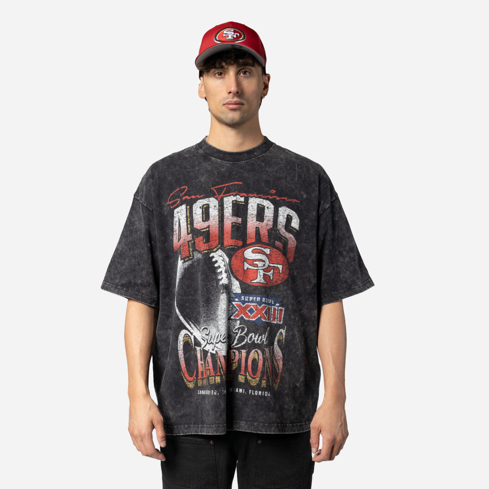 Esta Playera Manga Corta New Era de San Francisco 49Ers de la colección NFL Sports Classics presenta un diseño en color negro con un efecto deslavado, un estampado representativo de los 49Ers en la parte frontal y el flag de New Era bordado en la manga izquierda. Completa tu outfit y cómprala ya.