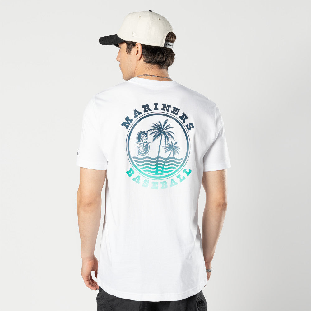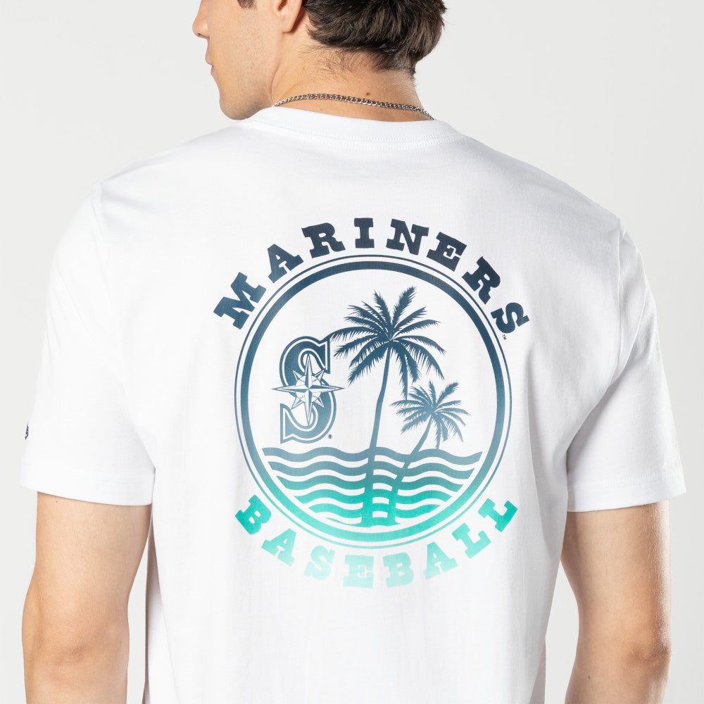 Este Playera Manga Corta New Era de Seattle Mariners de la colección MLB Summer presenta el logotipo de los Mariners en la parte frontal izquierda, el nombre y logo del equipo junto con unas palmeras y ondas de mar en la parte de atrás, y el flag de New Era bordado en la manga izquierda. Cómprala ya.