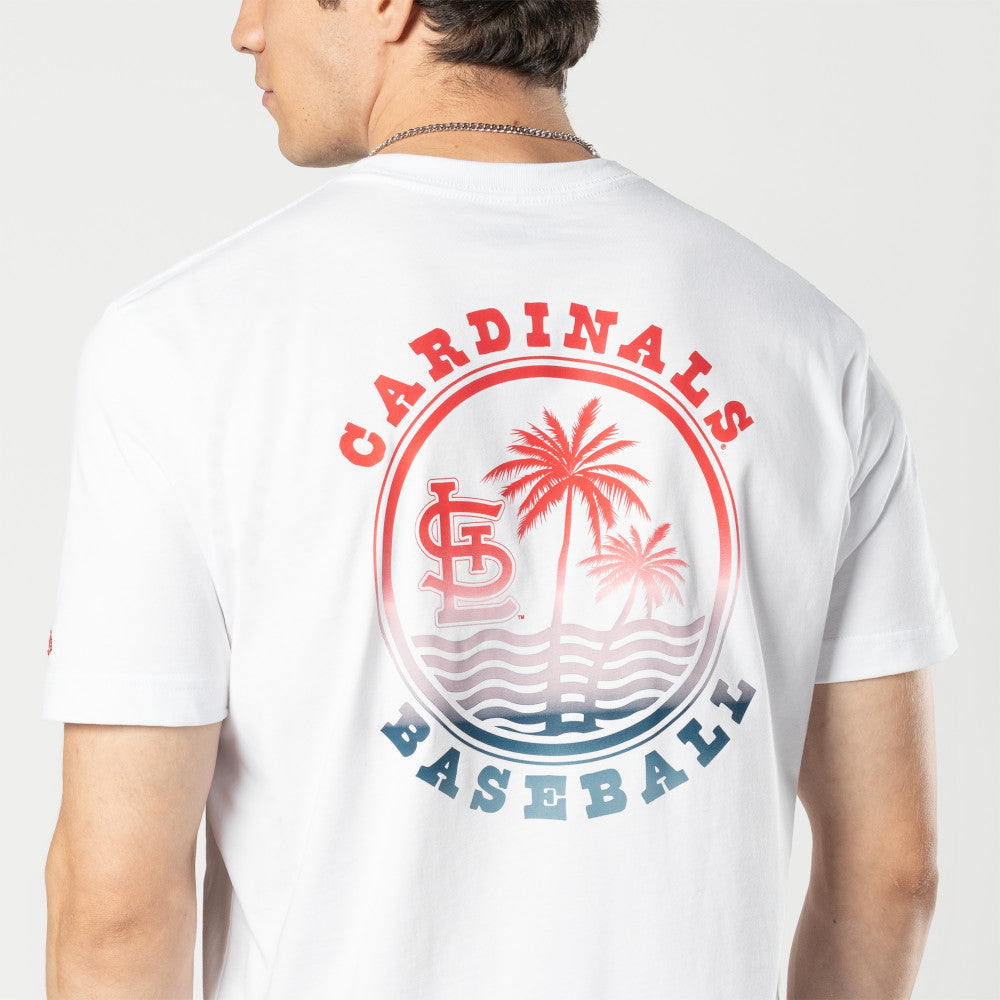 Este Playera Manga Corta New Era de St. Louis Cardinals de la colección MLB Summer presenta el logotipo de los Cardinals en la parte frontal izquierda, el nombre y logo del equipo junto con unas palmeras y ondas de mar en la parte de atrás, y el flag de New Era bordado en la manga izquierda. Cómprala ya.