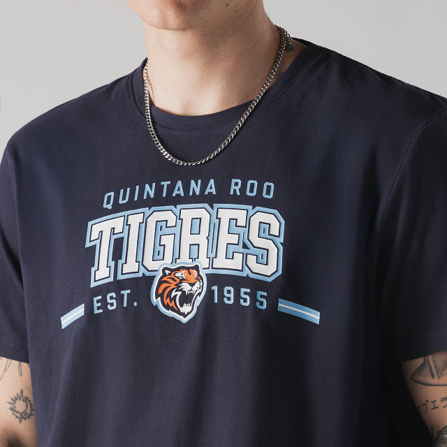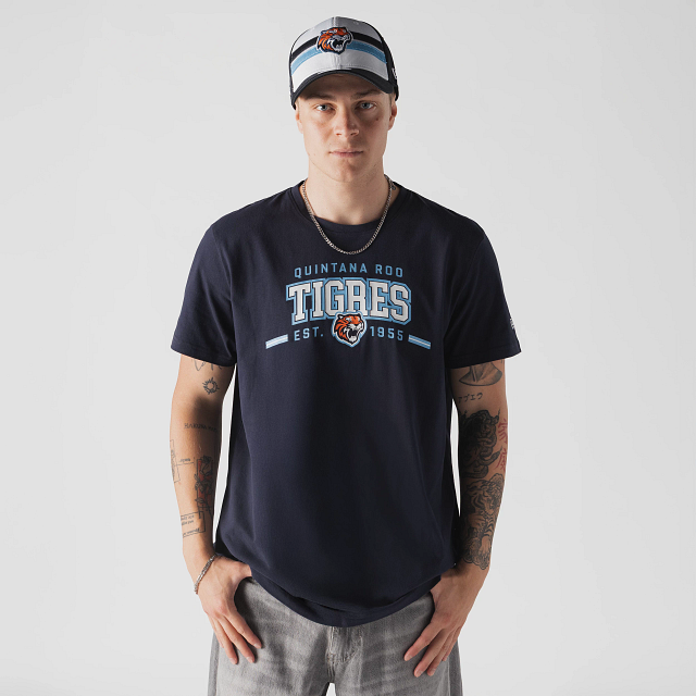 Apoya a tu equipo en esta pretemporada con esta Playera Manga Corta New Era de corte regular de Tigres de Quintana Roo de la colección LMB Spring Training 2026 que ofrece un ajuste cómodo y clásico, fiel a la talla e ideal para el uso diario. Presenta el año de fundación, nombre y logotipo de los Tigres estampados en la parte frontal y el flag de New Era bordado en la manga izquierda. Cómprala ya.