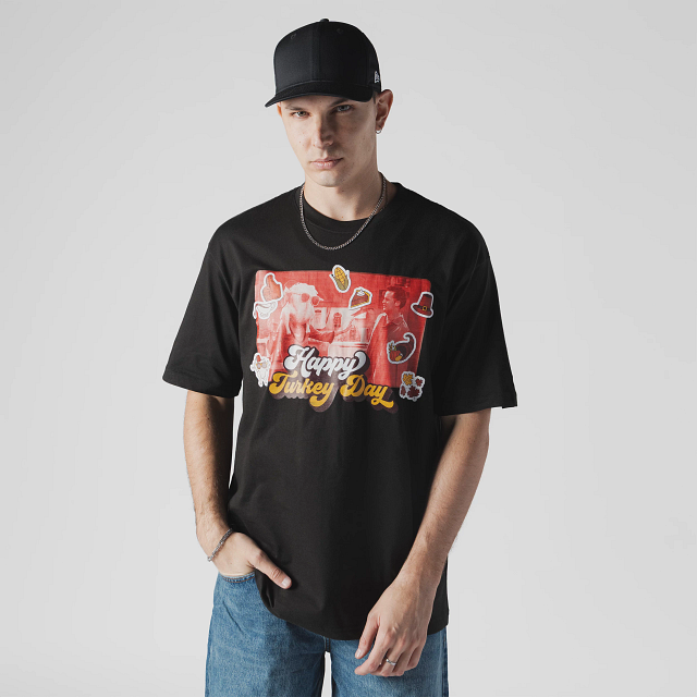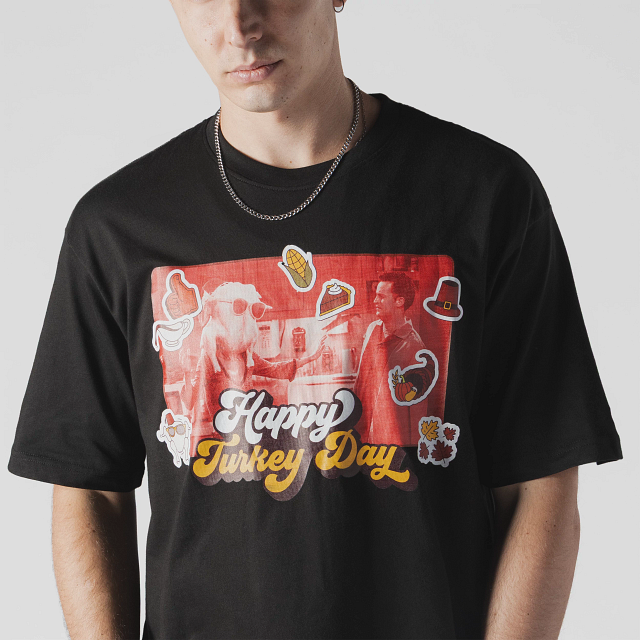 Esta Playera Manga Corta New Era de Friends presenta un estampado de Happy Turkey Day con una escena icónica de la serie en la parte frontal, un pavo etampado en el interior de la playera y el flag de New Era bordado en la manga izquierda. Cómprala ya.