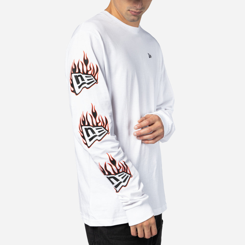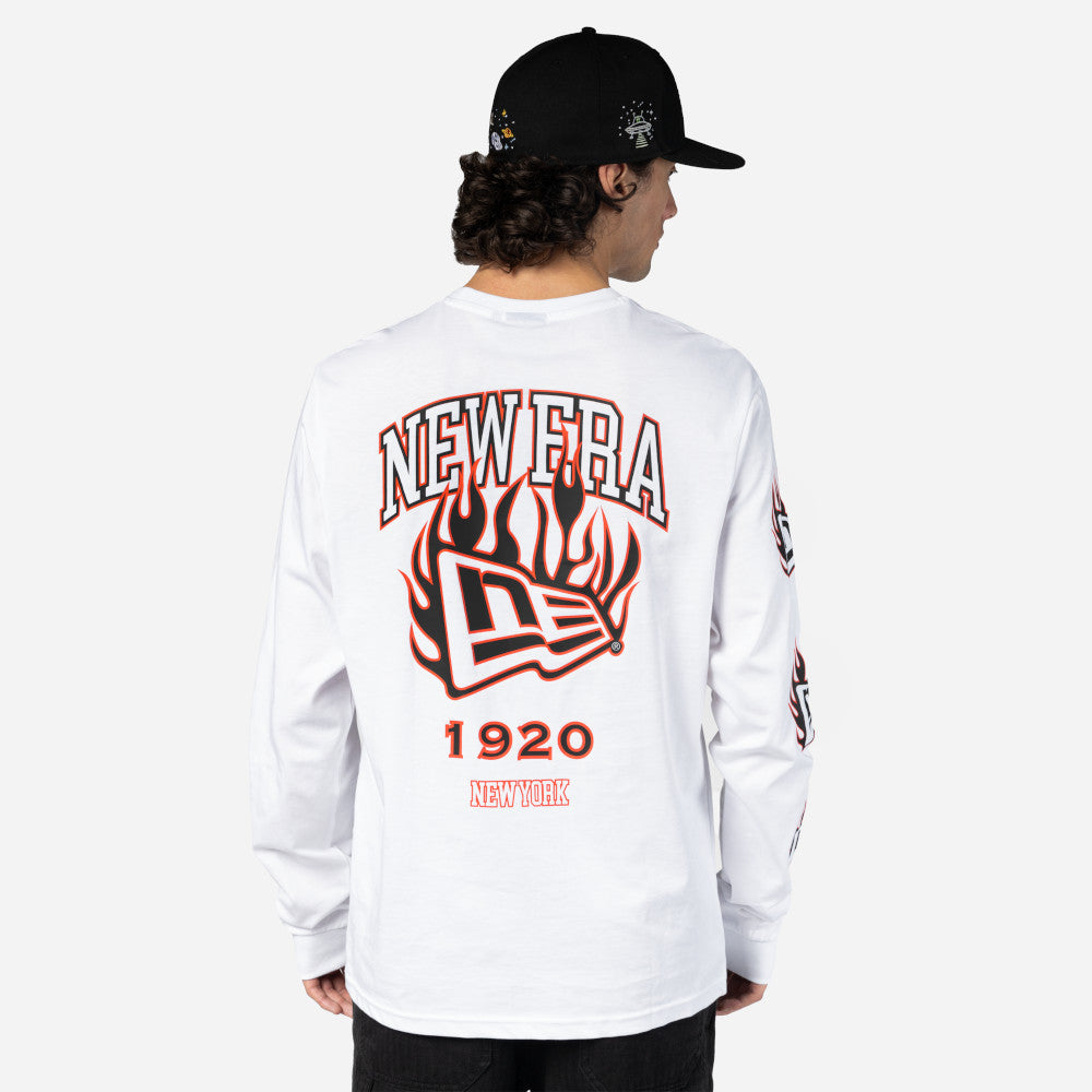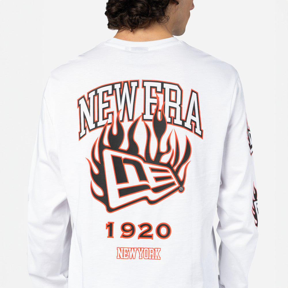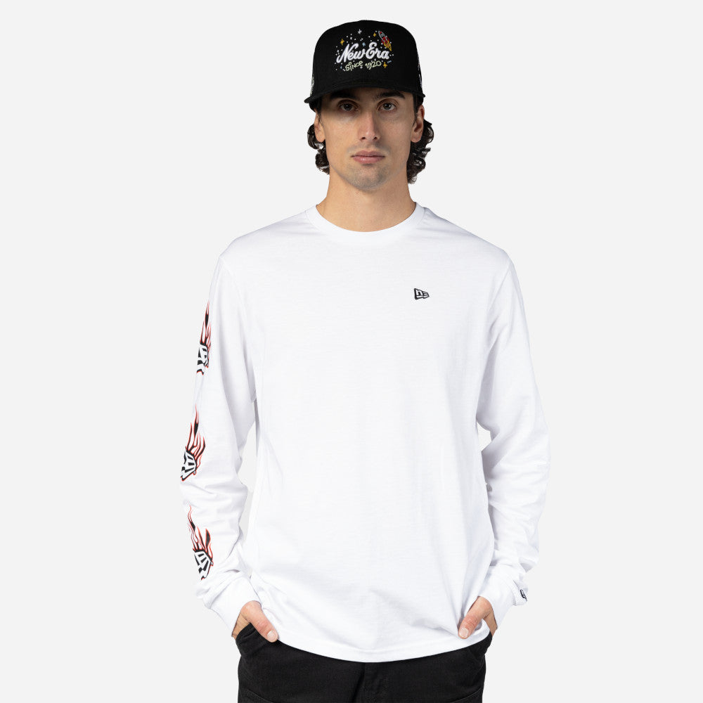Esta Playera Manga Larga New Era de la colección Flames presenta un diseño con el flag de New Era bordado en el frente y en la manga izquierda, el nombre y logotipo de New Era en llamas en la parte de atrás y en la manga derecha. Luce con estilo y cómprala ya.