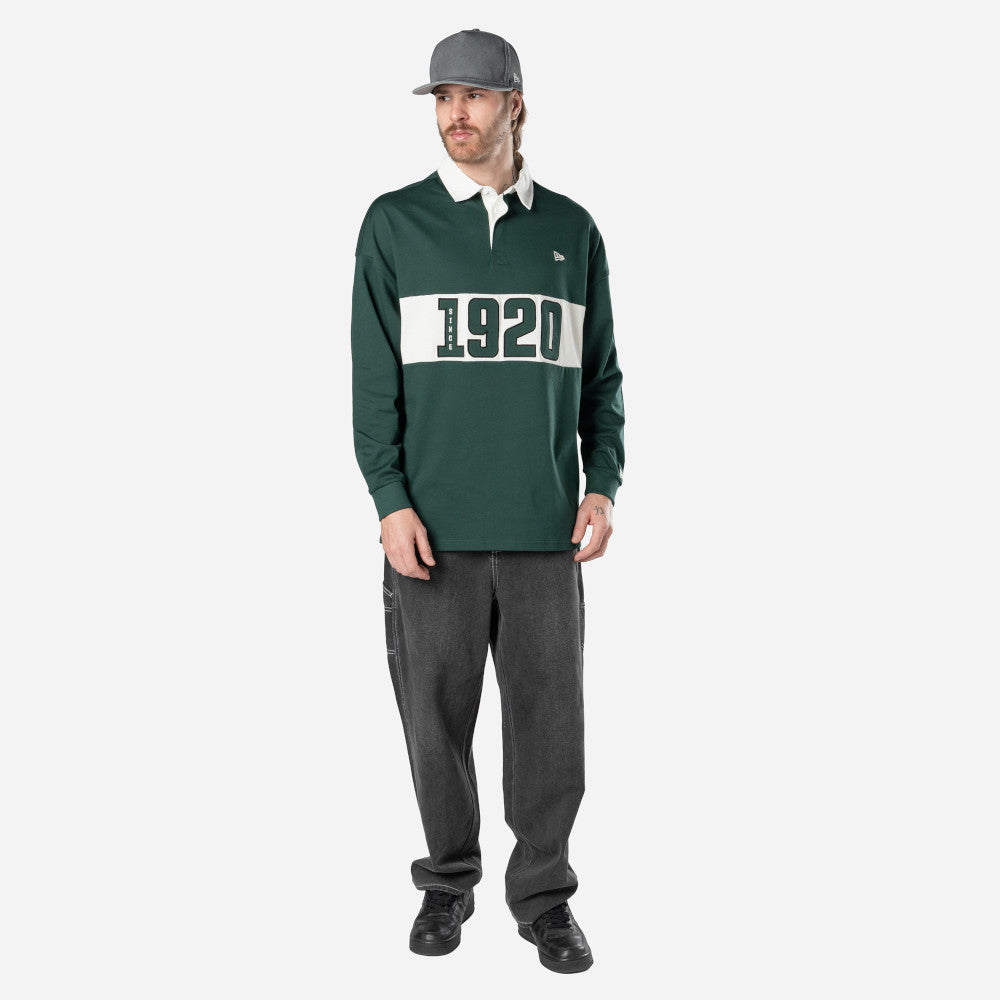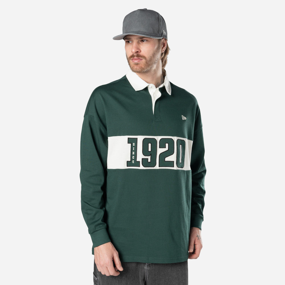 Esta Playera Manga Larga Tipo Polo New Era de la colección Smart Sport presenta un diseño en color verde con el año de fundación de New Era en la parte frontal acompañado del flag de New Era bordado en el frente y en la manga izquierda. Luce con estilo y cómprala ya.