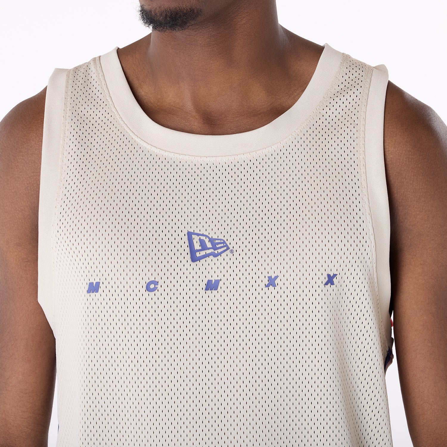 Esta Playera sin Mangas New Era de la colección New Era Contemporary presenta un diseño en mesh con el flag de New Era en la parte frontal. Cómprala ya.