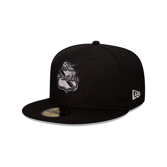 Esta gorra 59FIFTY de Puebla Futbol Scored presenta un logotipo del equipo en los paneles frontales bordado en puntada, creando un efecto de degradado que va del lado izquiero al derecho del logo. Cómprala ya.