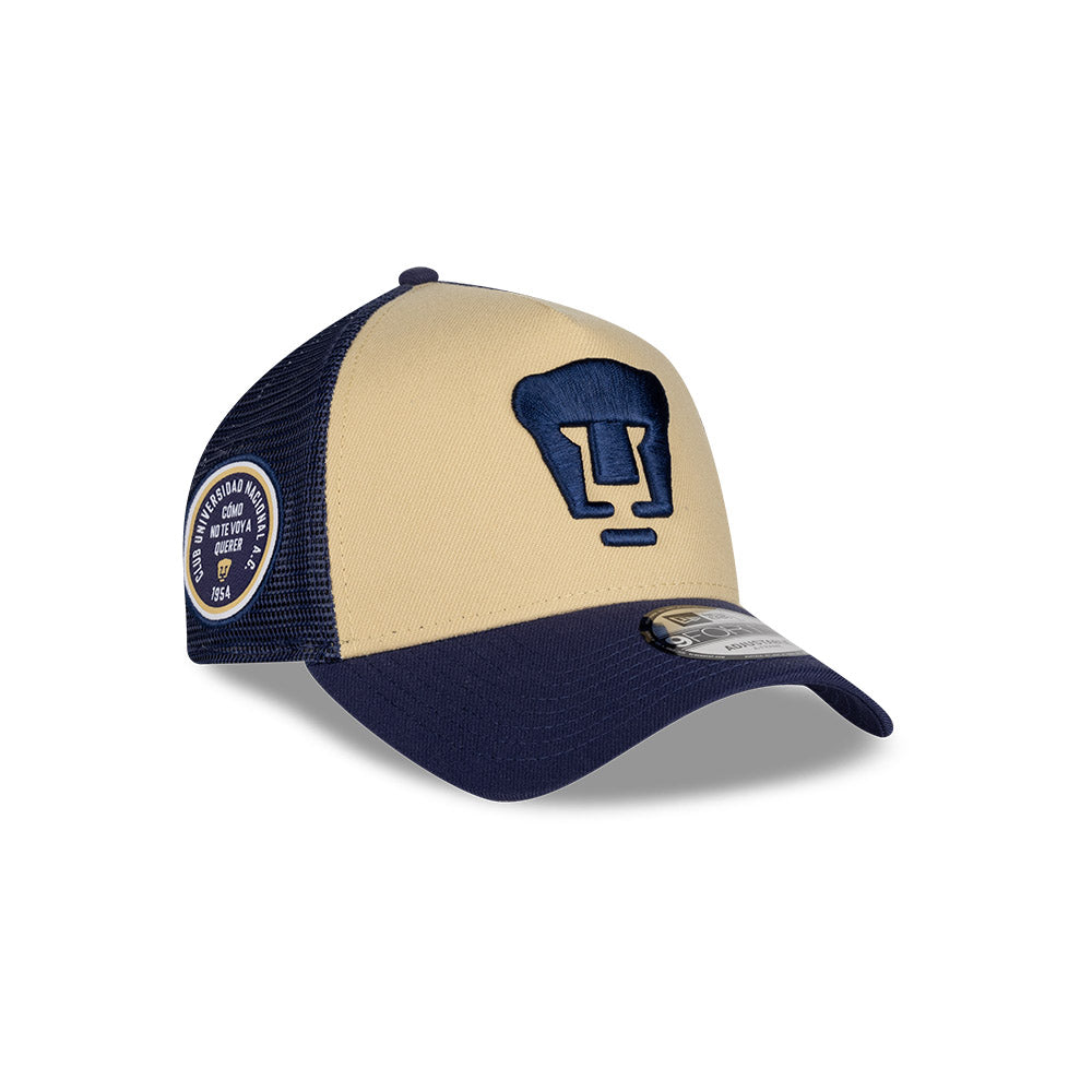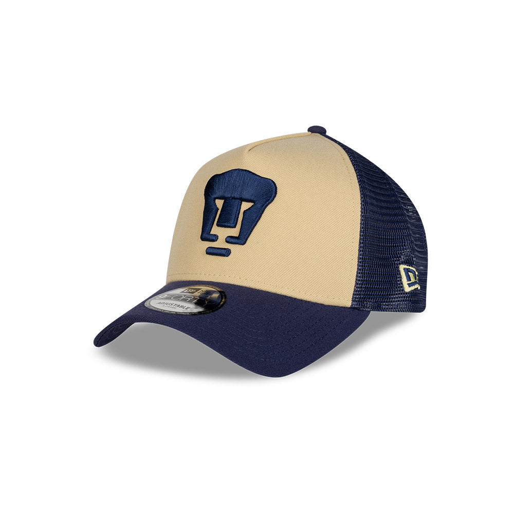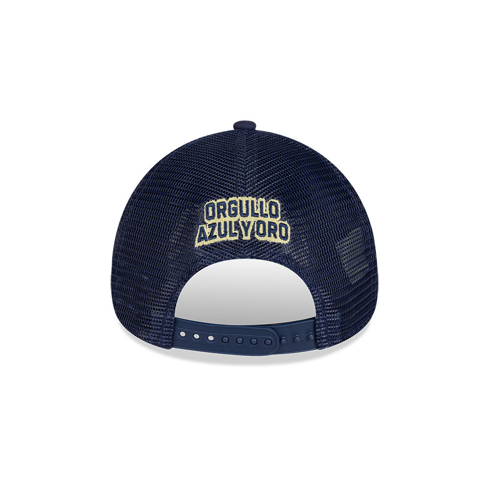 Esta gorra curva New Era 9FORTY AF de Pumas presenta un diseño con el logotipo de los Pumas bordado en los paneles frontales, parche conmemorativo del lado derecho, malla trucker y la frase Orgullo Azul y Oro al reverso y el flag de New Era bordado del lado izquierdo. Cómprala ya.