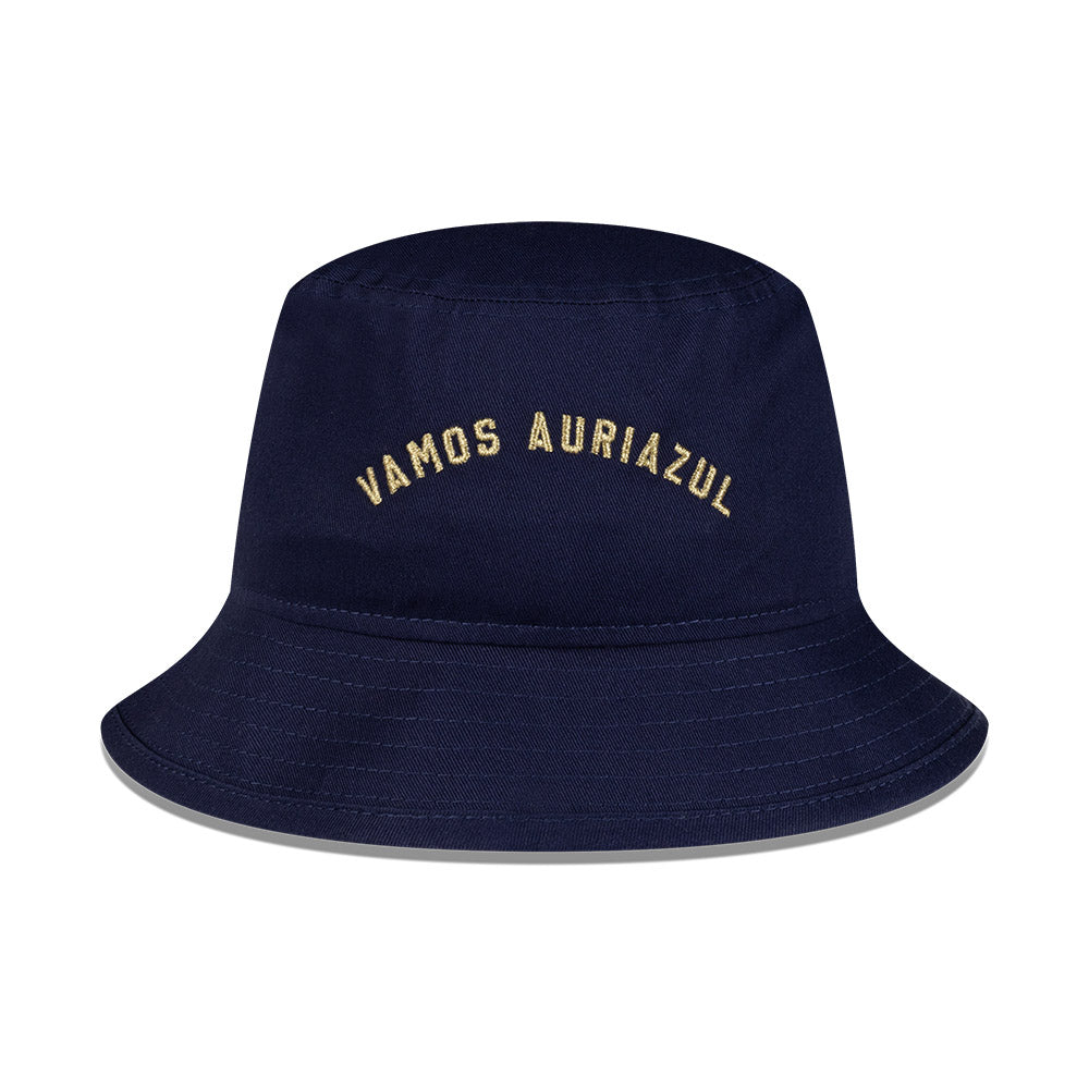 Este Bucket New Era de Pumas presenta un diseño con el logotipo de los Pumas bordado en la parte frontal, la frase Vamos Auriazul en la parte de atrás y el flag de New Era bordado del lado izquierdo. Cómprala ya.