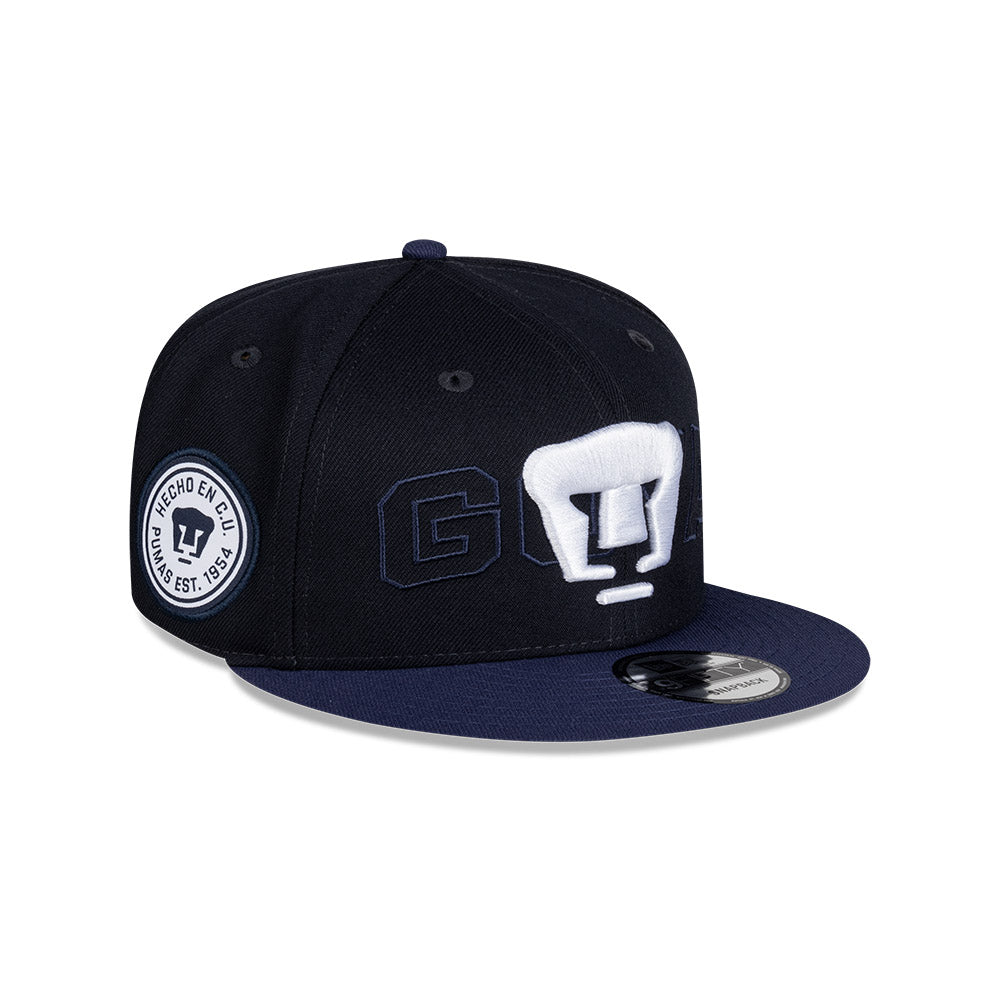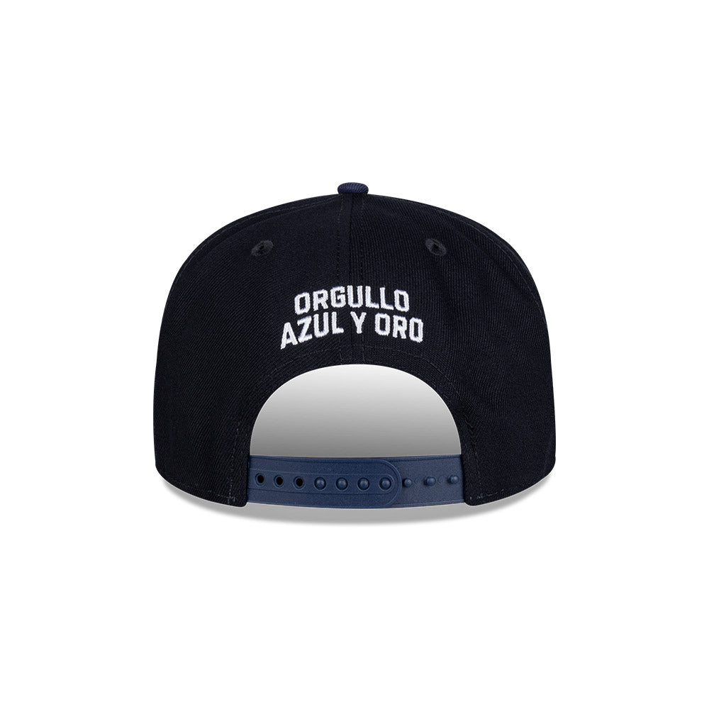 Esta gorra plana New Era 9FIFTY de Pumas presenta un diseño con el logotipo de los Pumas bordado en los paneles frontales sobre el texto de Goya, un parche conmemorativo del lado derecho, la frase Orgullo Azul y Oro al reverso y el flag de New Era bordado del lado izquierdo. Cómprala ya.