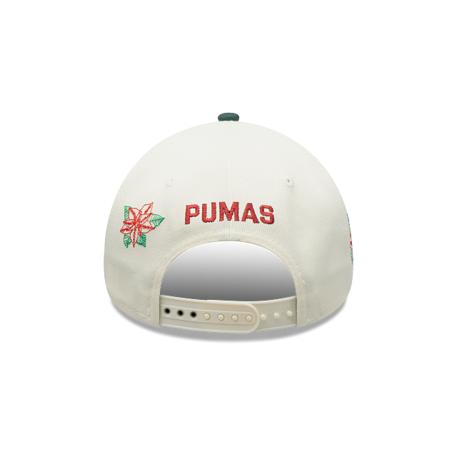 Esta gorra curva New Era 9FORTY A-Frame de Pumas de la colección LMX Nochebuena presenta un diseño con flores de nochebuena bordadas en la corona, el logotipo de los Pumas bordado en el panel frontal, el nombre del equipo en la parte de atrás y el flag de New Era bordado del lado izquierdo. Cómprala ya.
