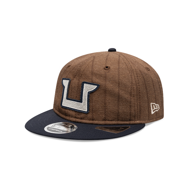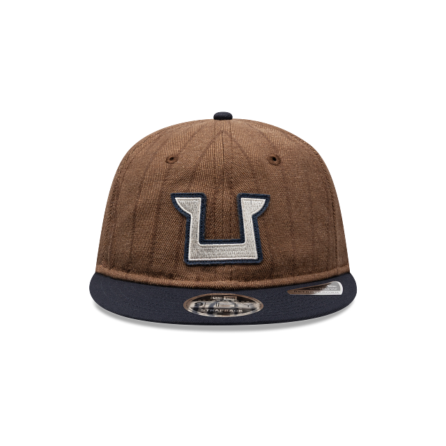 Esta gorra plana New Era 9FIFTY Retro Crown de Pumas de la colección Futbol Mexicano LMX Wool Pinstripe presenta una confección en lana con un diseño a rayas, el logotipo retro de los Pumas bordado en los paneles frontales, el nombre del equipo del lado derecho, el logo actual del equipo en la parte de atrás y el flag de New Era bordado del lado izquierdo. Cómprala ya.