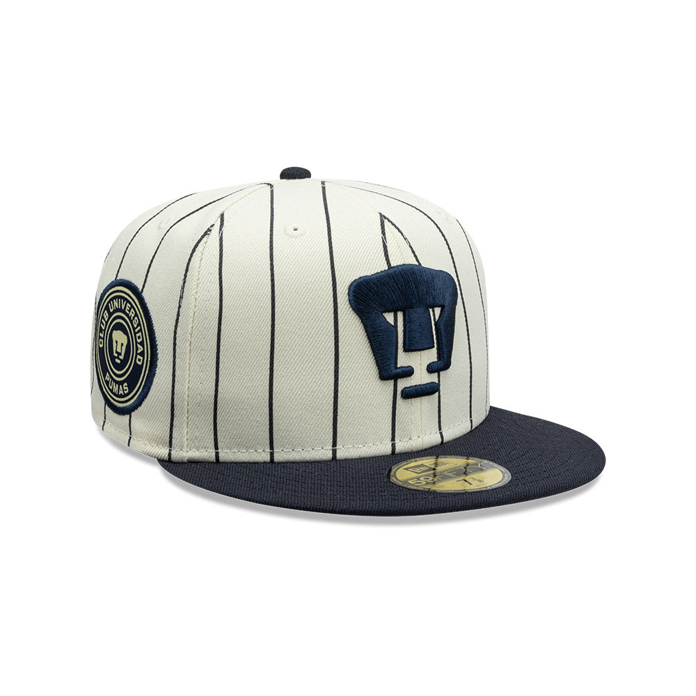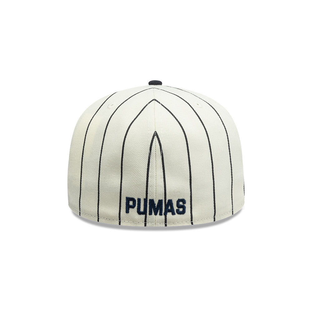 Esta gorra plana New Era 59FIFTY de Pumas de la colección Retro Pinstripe presenta un diseño a rayas con el logotipo de los Pumas bordado en los paneles frontales, un parche representativo del lado derecho, el nombre del equipo al reverso y el flag de New Era bordado del lado izquierdo. Cómprala ya.