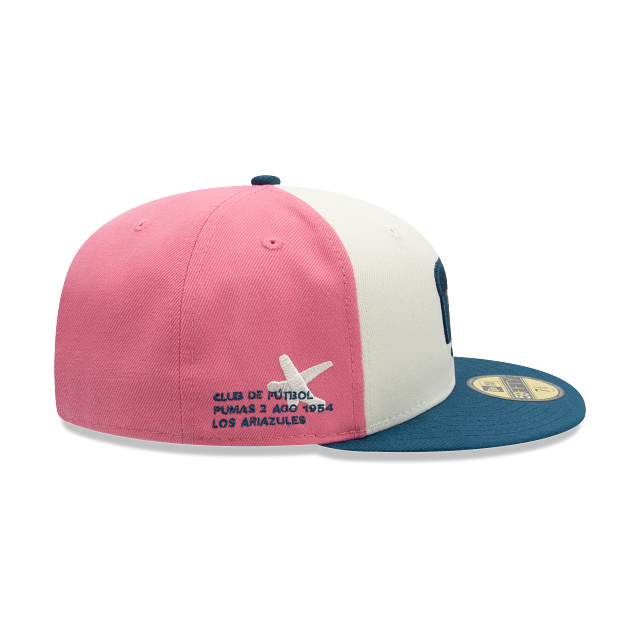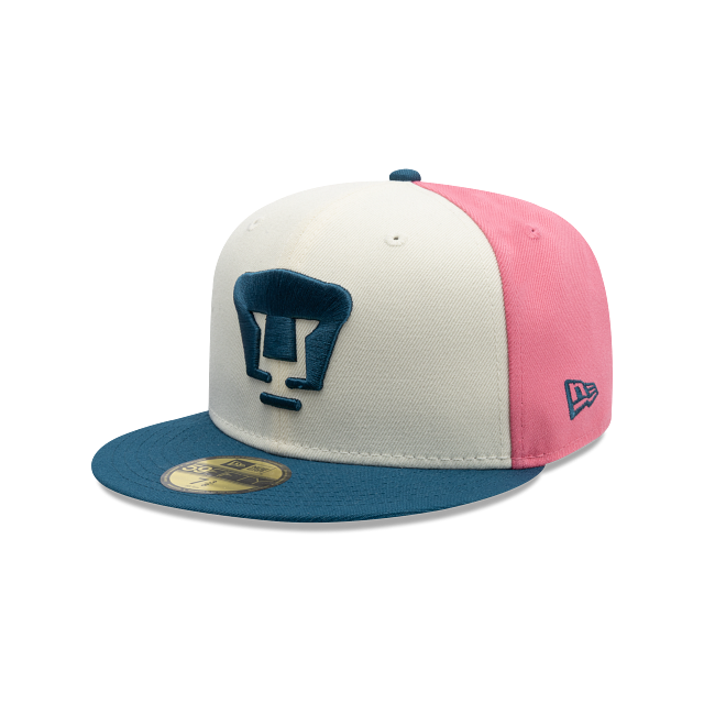Esta gorra plana New Era 59FIFTY de Pumas de la colección Futbol Mexicano White Front presenta el logotipo de los Pumas bordado en los paneles frontales, datos del equipo del lado derecho, el nombre del equipo al reverso y el flag de New Era bordado del lado izquierdo. Cómprala ya.