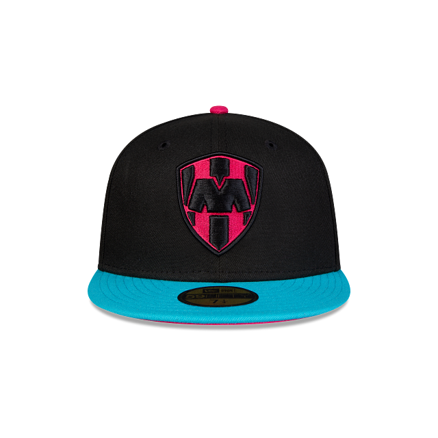Esta gorra New Era 59FIFTY de Rayados de Monterrey de la colección Cyber Collection presenta un diseño en tonos neón que destacan de una corona negra con el logotipo de los Rayados bordado en los paneles frontales, el nombre del equipo al reverso, visera azul y undervisor rosa, y el flag de New Era bordado en el lado izquierdo. Apoya a tu equipo con estilo y cómprala ya.