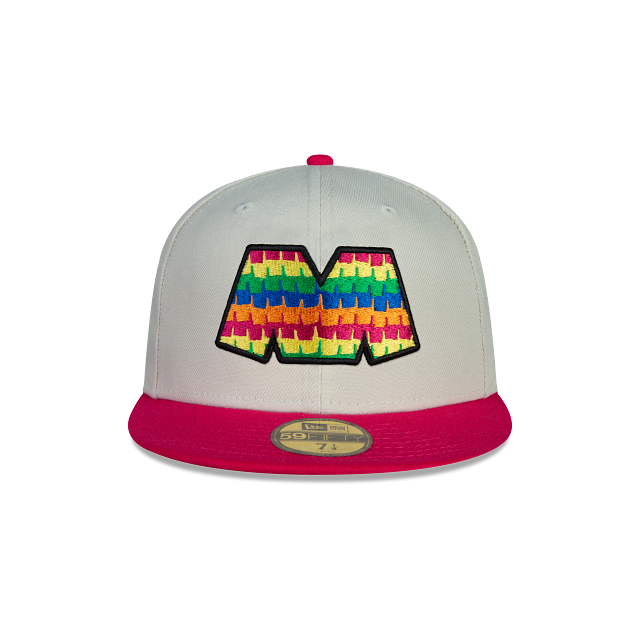 Esta gorra New Era 59FIFTY de Rayados de Monterrey de la colección Piñata Collection presenta una corona blanca con el logotipo de los Rayados bordado en los paneles frontales, el nombre al reverso, visera rosa con undervisor de piñata y el flag de New Era bordado en el lado izquierdo. Apoya a tu equipo y cómprala ya.