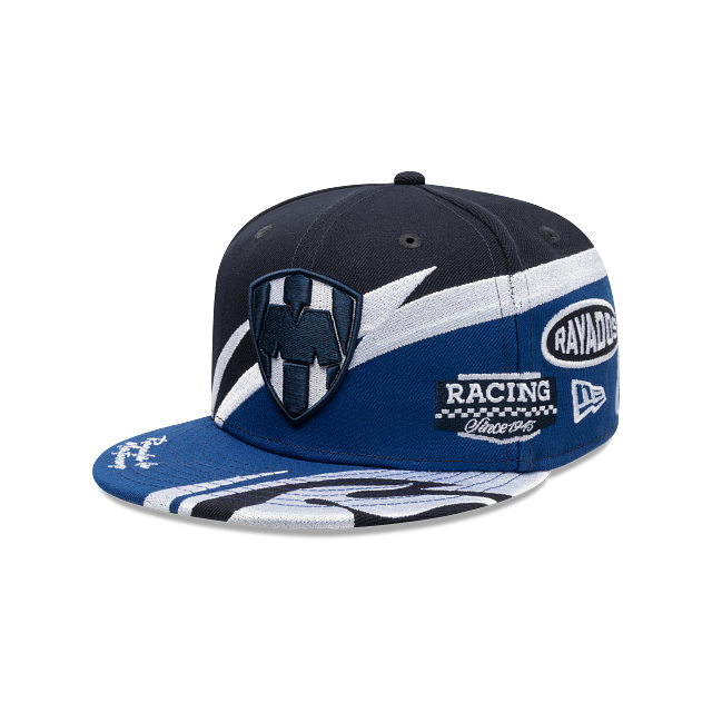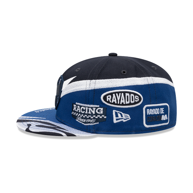 Esta gorra plana New Era 59FIFTY de Rayados de la colección Futbol Mexicano Racing presenta un diseño inspirado en el deporte motor con el logotipo de los Rayados bordado en los paneles frontales, parches alusivos al automóvilismo en la corona, sweatband con patrón de bandera a cuadros y el flag de New Era bordado del lado izquierdo. Cómprala ya.