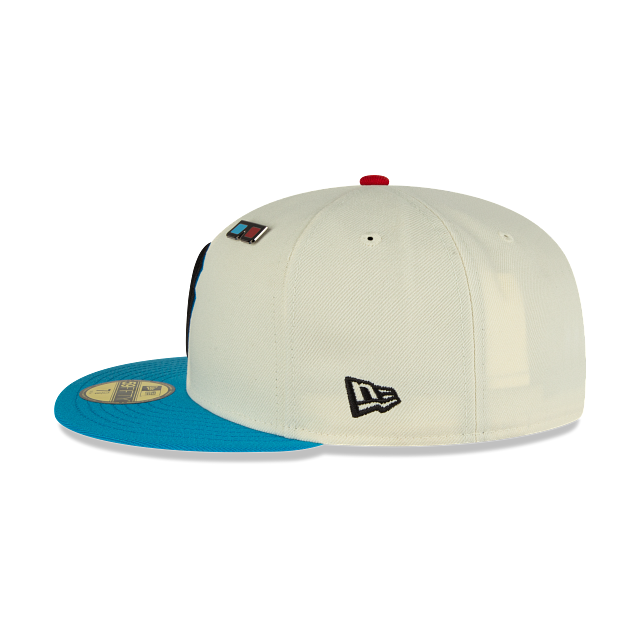 Esta gorra New Era 59FIFTY de Rayos del Necaxa de la colección 3D Collection presenta un distintivo pin con lentes 3D, el logotipo del Necaxa en color negro con el efecto de detalles rojos y azules bordado al frente, el nombre al reverso de una corona blanca con visera azul y undervisor rojo, y el flag de New Era bordado en el lado izquierdo. Apoya a tu equipo con estilo y cómprala ya.