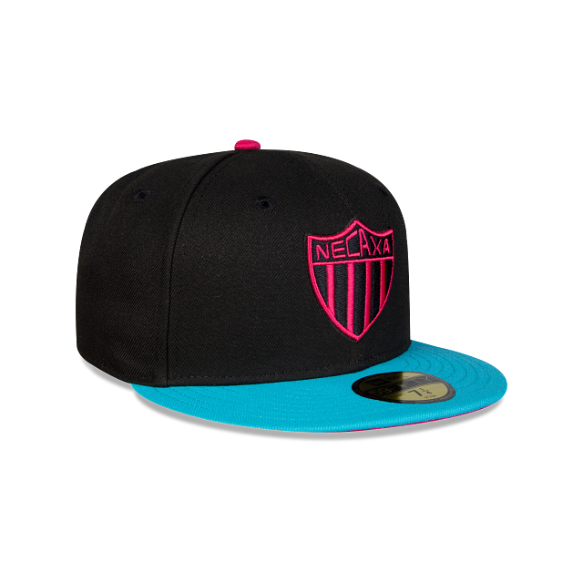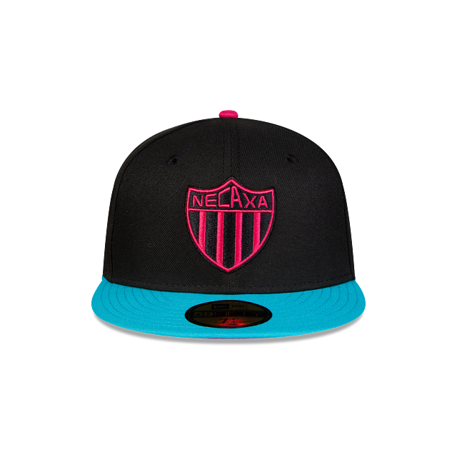 Esta gorra New Era 59FIFTY de Rayos del Necaxa de la colección Cyber Collection presenta un diseño en tonos neón que destacan de una corona negra con el logotipo del Necaxa bordado en los paneles frontales, el nombre del equipo al reverso, visera azul y undervisor rosa, y el flag de New Era bordado en el lado izquierdo. Apoya a tu equipo con estilo y cómprala ya.