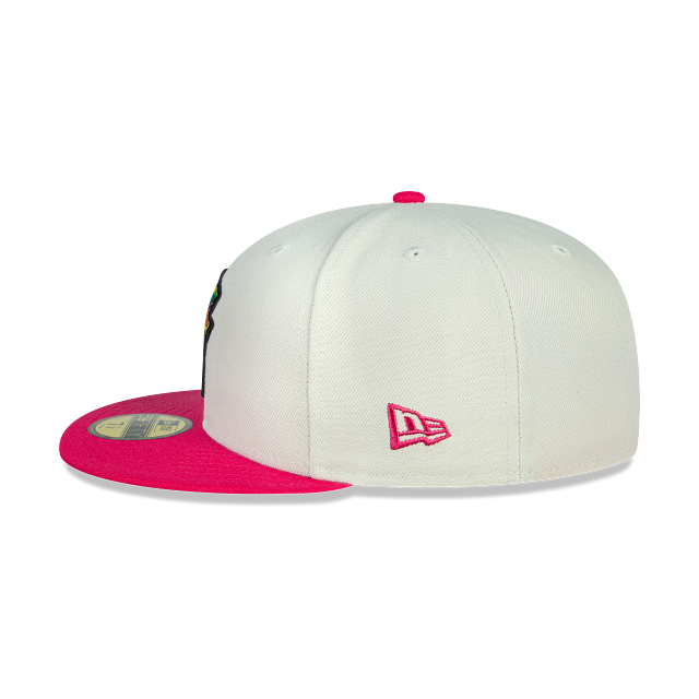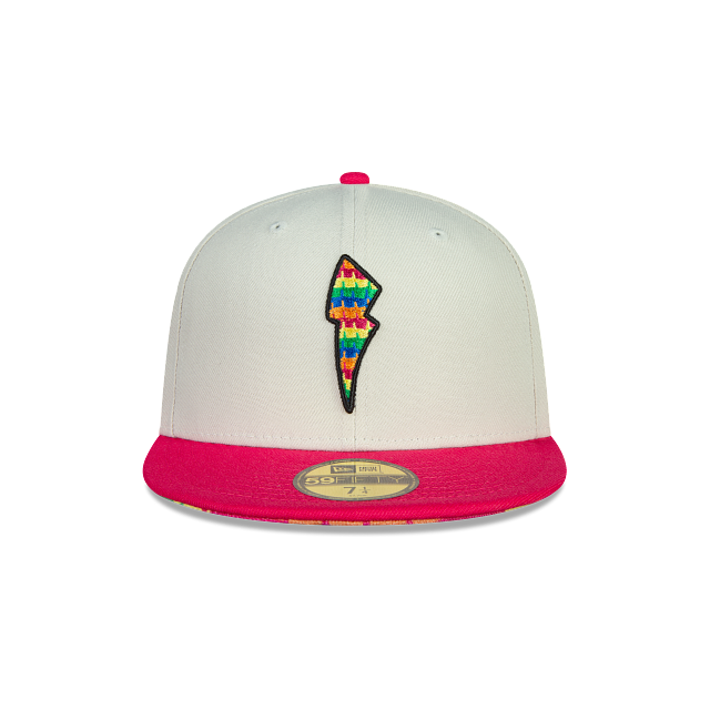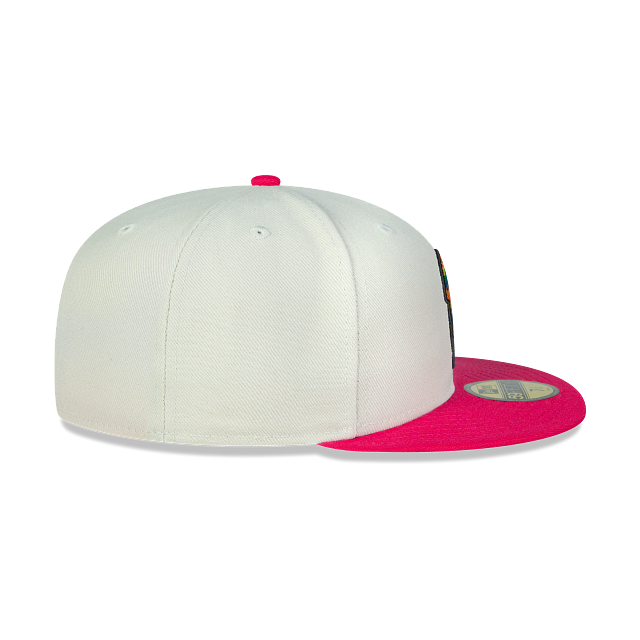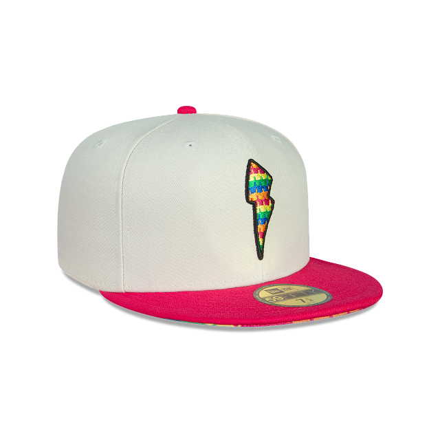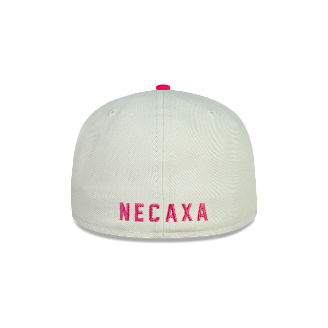 Esta gorra New Era 59FIFTY de Rayos del Necaxa de la colección Piñata Collection presenta una corona blanca con el logotipo del Necaxa bordado en los paneles frontales, el nombre al reverso, visera rosa con undervisor de piñata y el flag de New Era bordado en el lado izquierdo. Apoya a tu equipo y cómprala ya.