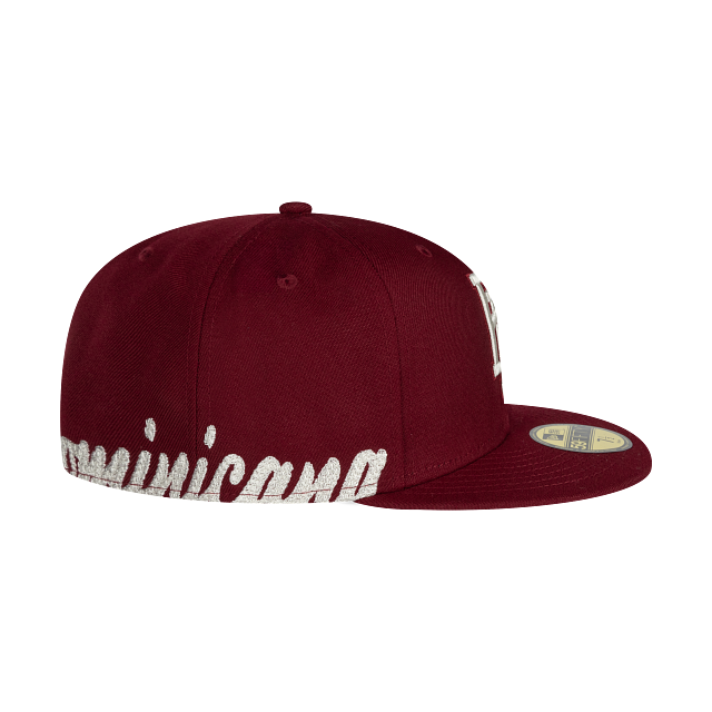 Esta gorra plana New Era 59FIFTY de la colección Beisbol del Caribe presenta un diseño en color vino con la abreviatura RP de República Dominicana bordada en los paneles frontales, Dominicana del lado derecho y el flag de New Era bordado del lado izquierdo. Cómprala ya.