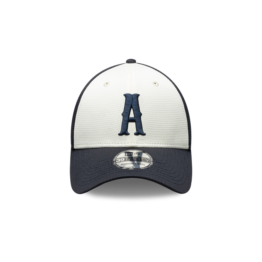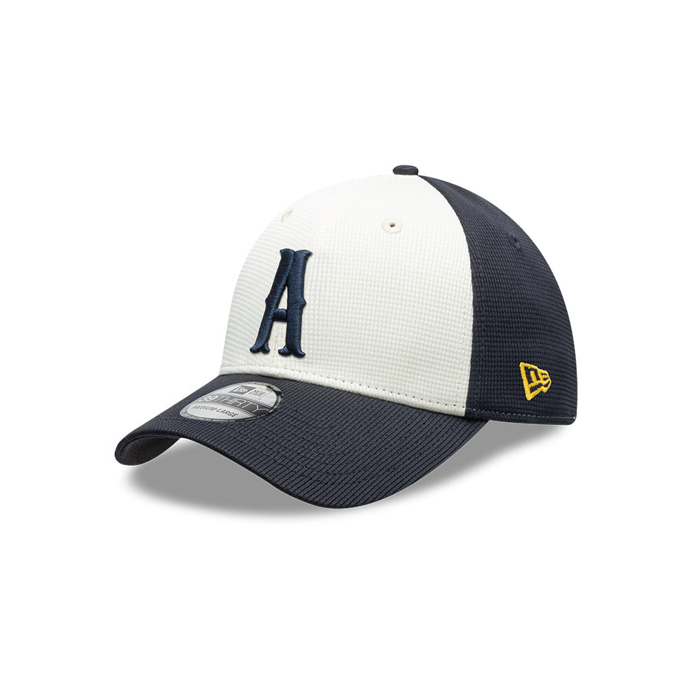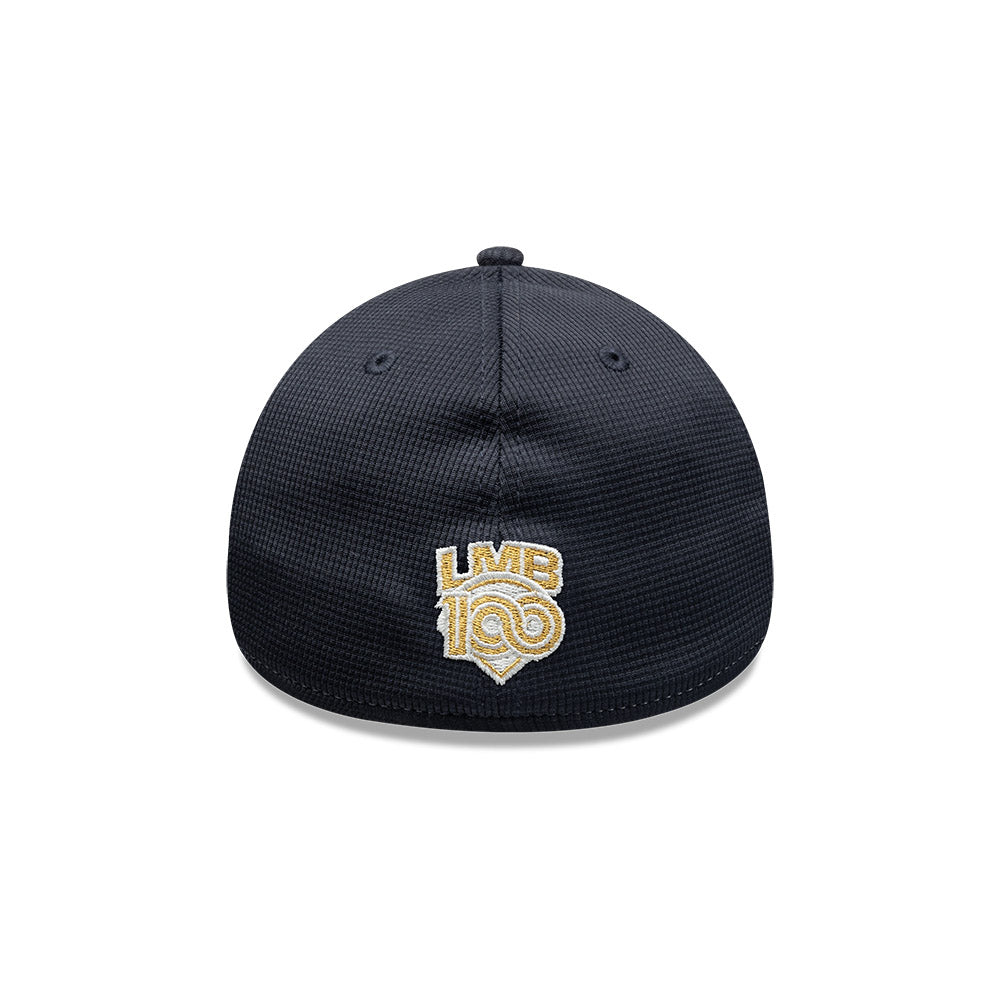 Esta gorra curva New Era 39THIRTY de Rieleros de Aguascalientes de la colección LMB Spring Training 2025 presenta el logotipo de los Rieleros bordado en los paneles frontales, un parche Spring Training 2025 del lado derecho, el logo de la LMB 100 Años al reverso y el flag de New Era bordado del lado izquierdo. Cómprala ya.