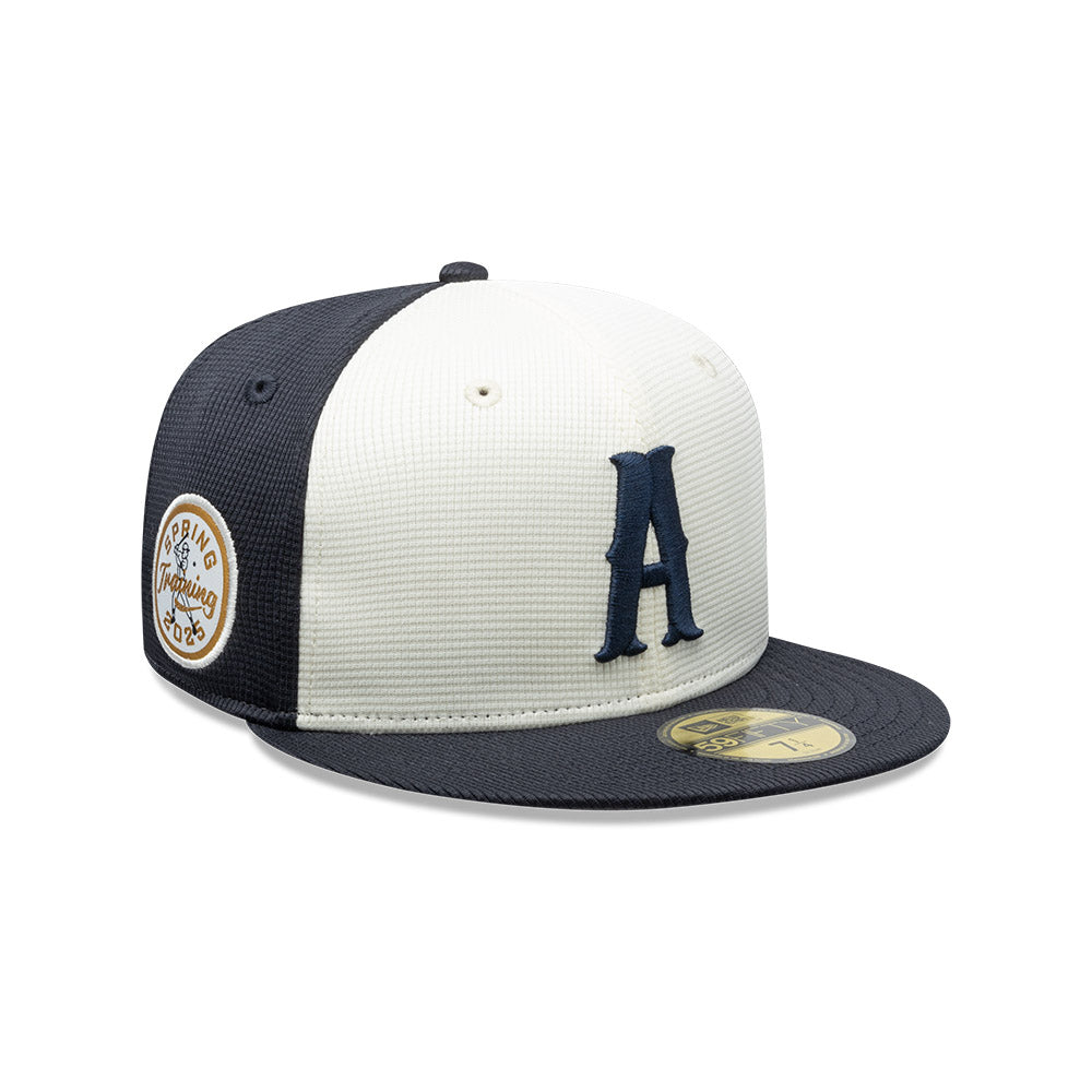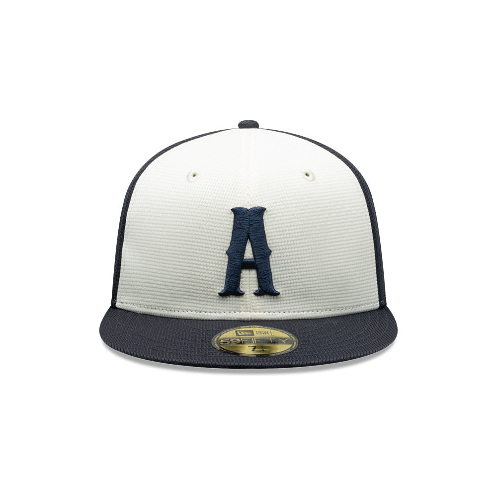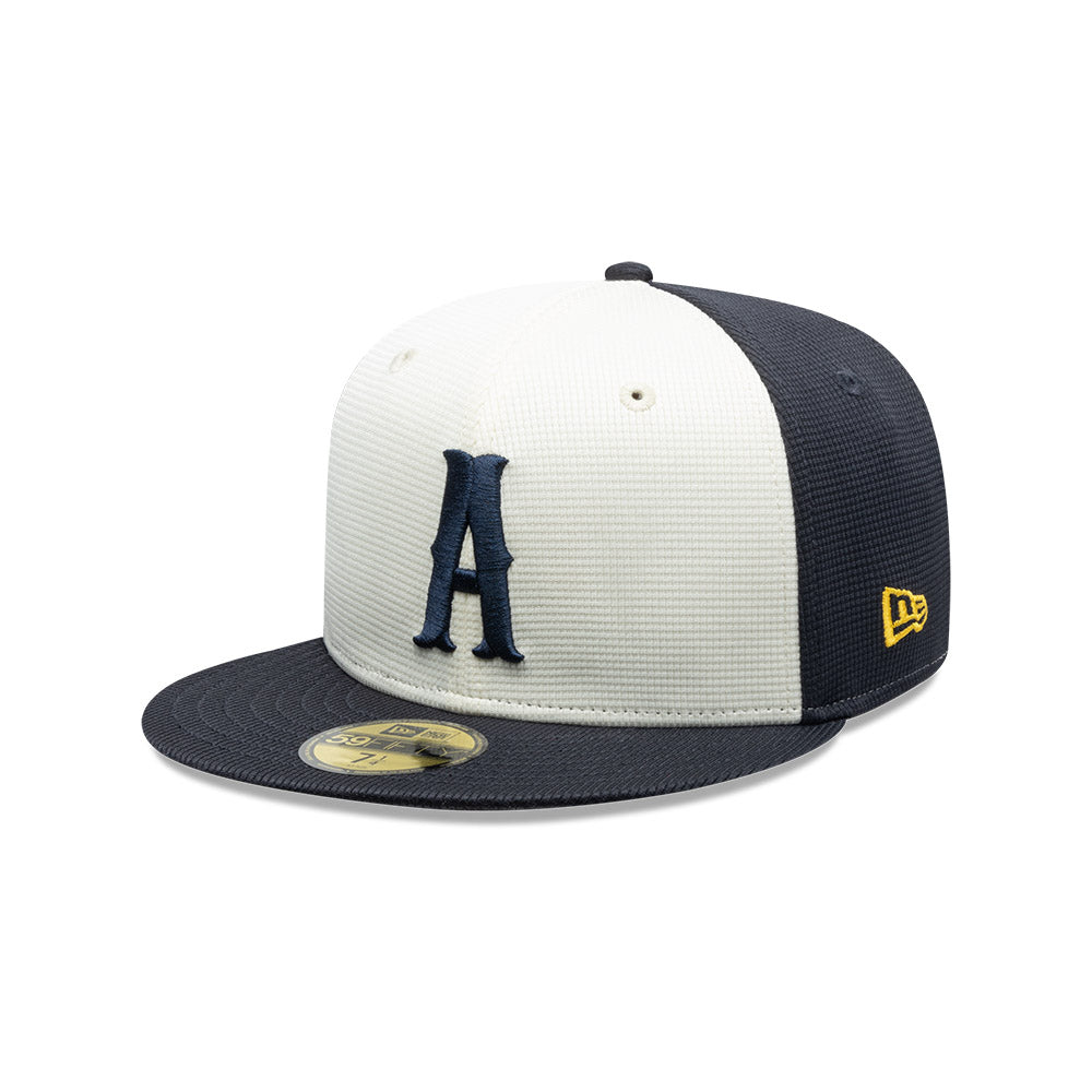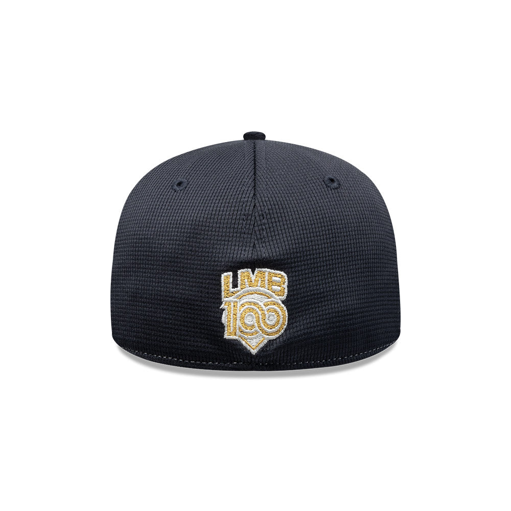Esta gorra plana New Era 59FIFTY de Rieleros de Aguascalientes de la colección LMB Spring Training 2025 presenta el logotipo de los Rieleros bordado en los paneles frontales, un parche Spring Training 2025 del lado derecho, el logo de la LMB 100 Años al reverso y el flag de New Era bordado del lado izquierdo. Cómprala ya.