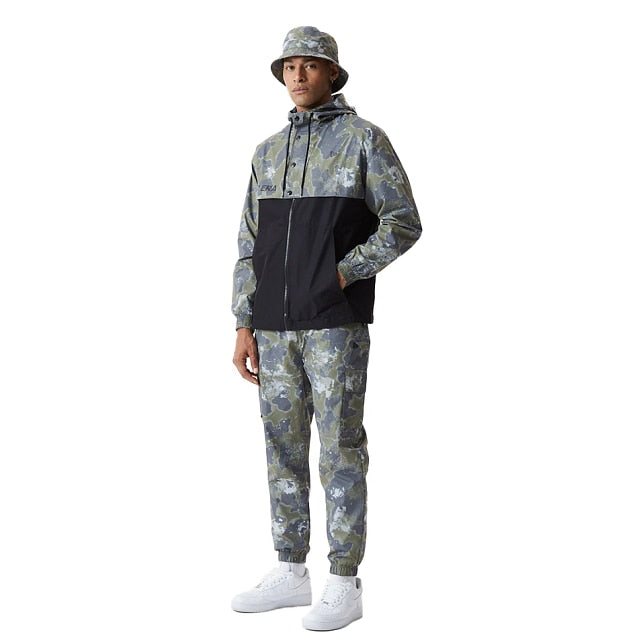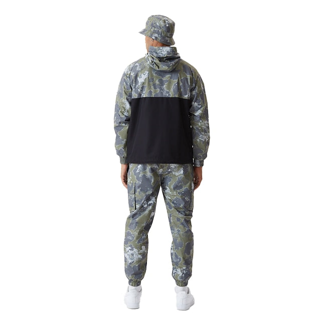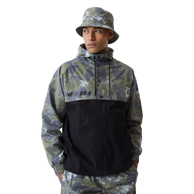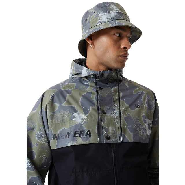 Checa este rompevientos New Era hecho de poliéster 100% reciclado, cierre al frente y hoodie. Canesú con snaps al frente. New Era wordmark en screen print y la bandera de New Era bordada en la manga izquierda.