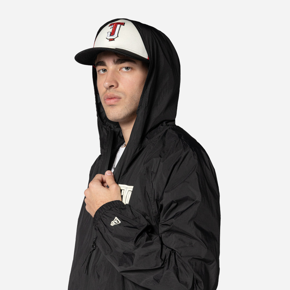 Este Rompevientos New Era de Toros de Tijuana de la colección LMB Spring Training 2025 presenta el logotipo de los Toros en la parte frontal izquierda, un bolsillo con cierre en el frente, el nombre del equipo sobre el logo al reverso y el flag de New Era bordado en la manga izquierda. Cómpralo ya.