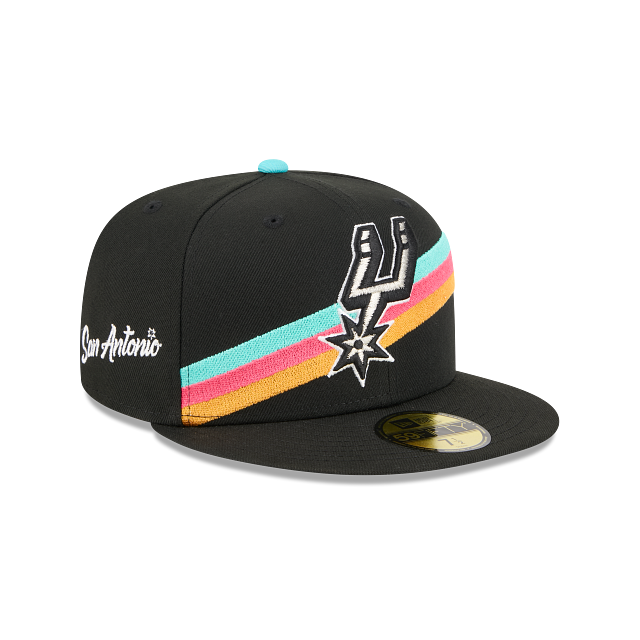 Esta gorra plana New Era 59FIFTY de San Antonio Spurs de la colección NBA City Edition 2025 presenta el logotipo de los Spurs bordado en los paneles frontales, el nombre de la ciudad del equipo del lado derecho, el logo de la NBA en la parte de atrás y el flag de New Era bordado del lado izquierdo. Cómprala ya.