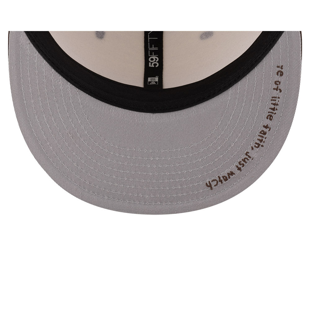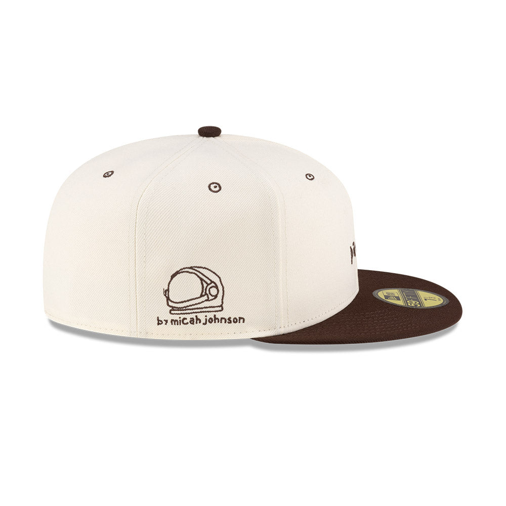 Esta gorra plana New Era 59FIFTY de San Diego Padres de la colaboración Micah Johnson X MLB presenta el nombre de los Padres bordado en los paneles frontales, el casco del astronauta AKU del lado derecho, el MLB Batterman al reverso, la frase Ye of little faith, just watch bordada en el undervisor y el flag de New Era bordado del lado izquierdo. Cómprala ya.