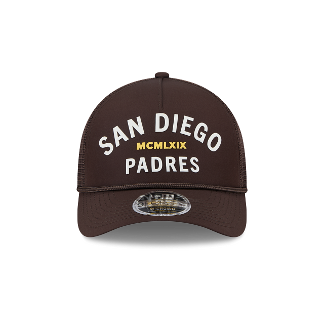 Esta gorra curva New Era 9FORTY M-Crown A-Frame de San Diego Padres de la colección MLB Active presenta el nombre de los Padres bordado en los paneles frontales, malla trucker al reverso y el flag de New Era bordado del lado izquierdo. Cómprala ya.