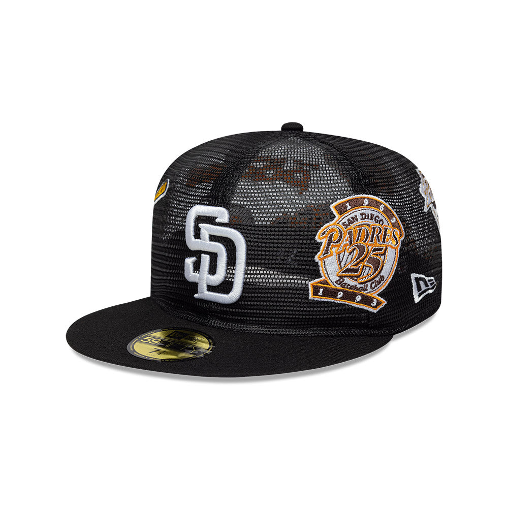 Esta gorra plana New Era 59FIFTY de San Diego Padres de la colección MLB All Over Mesh presenta un diseño en mesh con el logotipo de los Padres bordado en los paneles frontales acompañado de parches representativos del equipo en toda la corona, el MLB Batterman bordado al reverso y el flag de New Era bordado del lado izquierdo. Cómprala ya.