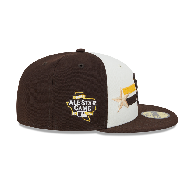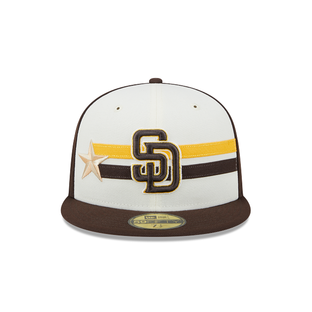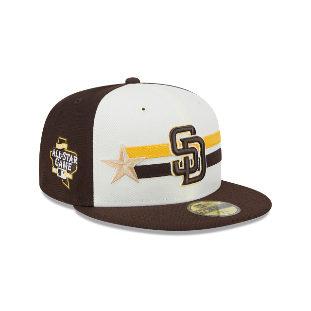Las estrellas de las Grandes Ligas se reúnen en Texas. Forma parte del magno evento con esta gorra plana New Era 59FIFTY de San Diego Padres de la colección MLB All Star Game Workout 2024 que presenta el logotipo de los Padres en los paneles frontales blancos sobre dos líneas horizontales que forman el destello de una estrella, un diseño especial en el undervisor, parche del evento del lado derecho, MLB Batterman al reverso y el flag de New Era del lado izquierdo. Cómprala ya.