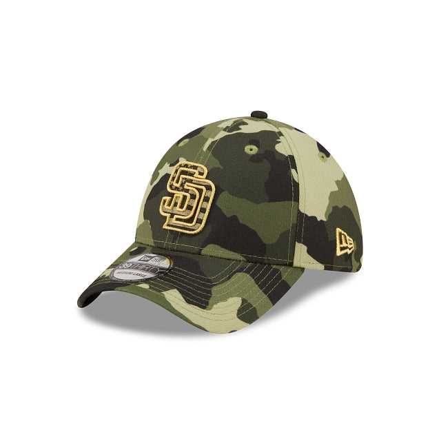 Esta gorra 39THIRTY de San Diego Padres de la colección MLB Armed Forces Day 2022 presenta el logotipo de los Padres en los paneles frontales con el contorno dorado y en el centro la bandera de los Estados Unidos, sobre un diseño en camuflaje verde. Detalles adicionales incluyen parche militar del equipo en el lado derecho. Cómprala ya.