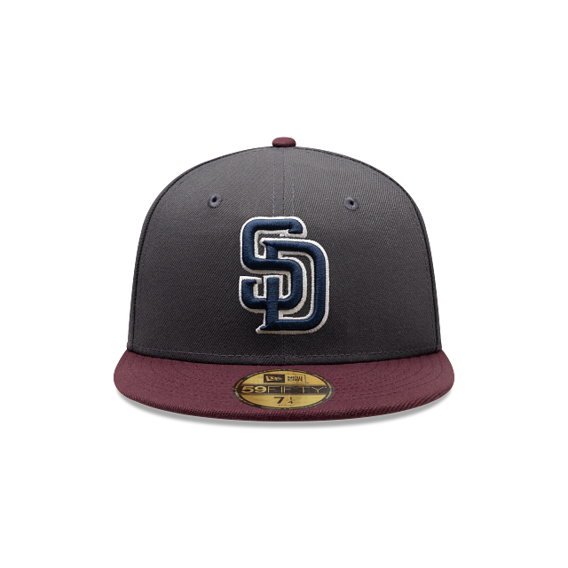 Esta gorra plana New Era 59FIFTY de San Diego Padres de la colección MLB Blue Maroon presenta el logotipo de los Padres bordado en los paneles frontales, un parche conmemorativo del lado derecho, el MLB Batterman al reverso y el flag de New Era bordado del lado izquierdo. Cómprala ya.