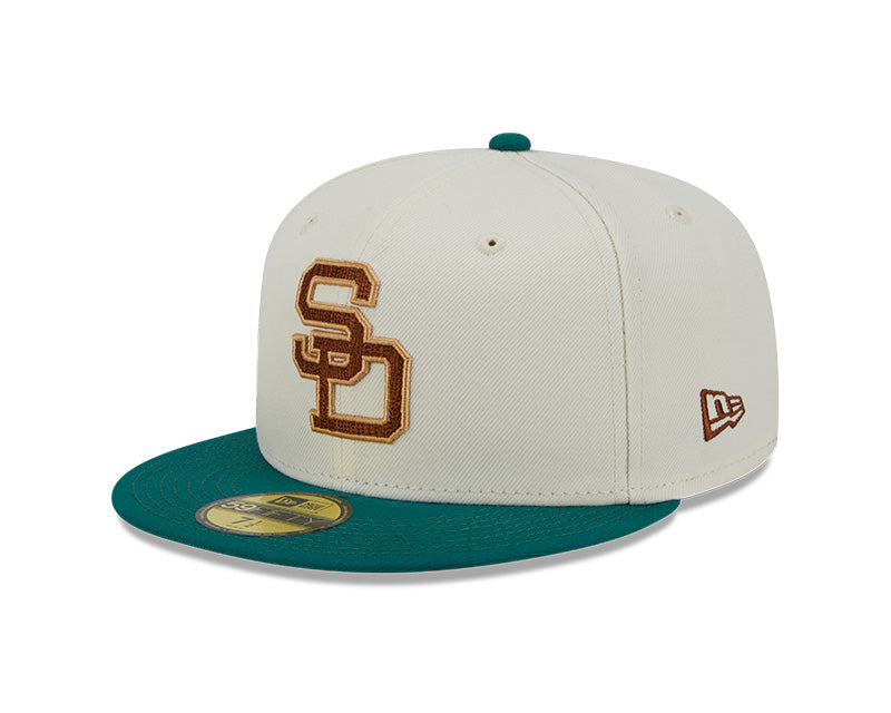 Esta gorra New Era 59FIFTY de San Diego Padres de la colección MLB Camp presenta un diseño en dos tonos con la visera verde y la corona blanca con el logotipo de los Padres bordado en los paneles frontales, el Batterman al reverso, y el flag de New Era bordado en el lado izquierdo. Dale un toque a tu outfit y cómprala ya