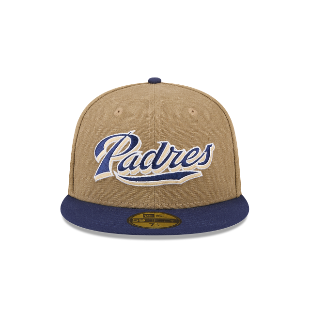 Esta gorra New Era 59FIFTY de San Diego Padres de la colección MLB Canvas Crown presenta un diseño two tone con una distintiva corona café con el nombre de los Padres bordado en los paneles frontales, un parche conmemorativo del lado derecho, el MLB Batterman al reverso abajo del nombre del equipo y el flag de New Era bordado en el lado izquierdo. Cómprala ya.