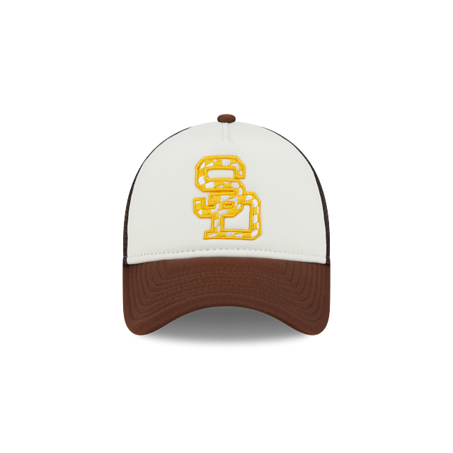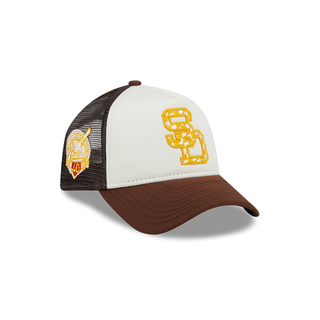 Esta gorra New Era 9FORTY AF Trucker de San Diego Padres de la colección MLB Check Flag presenta el frente blanco con el logotipo de los Padres en los paneles frontales, un parche conmemorativo del lado derecho, malla y visera del color del equipo, y el flag de New Era bordado en el lado izquierdo. Luce con estilo. Cómprala ya.