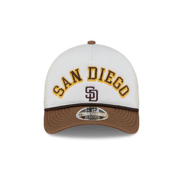 Esta gorra curva New Era 9FORTY M-Crown A-Frame de San Diego Padres de la colección MLB Chrome Arch presenta el nombre y logotipo de los Padres bordados en los paneles frontales, malla trucker al reverso y el flag de New Era bordado del lado izquierdo. Cómprala ya.