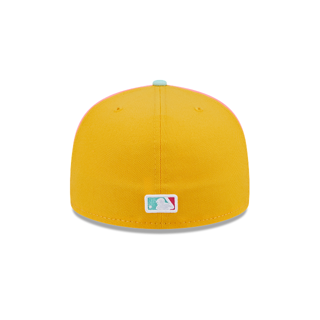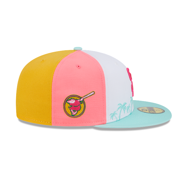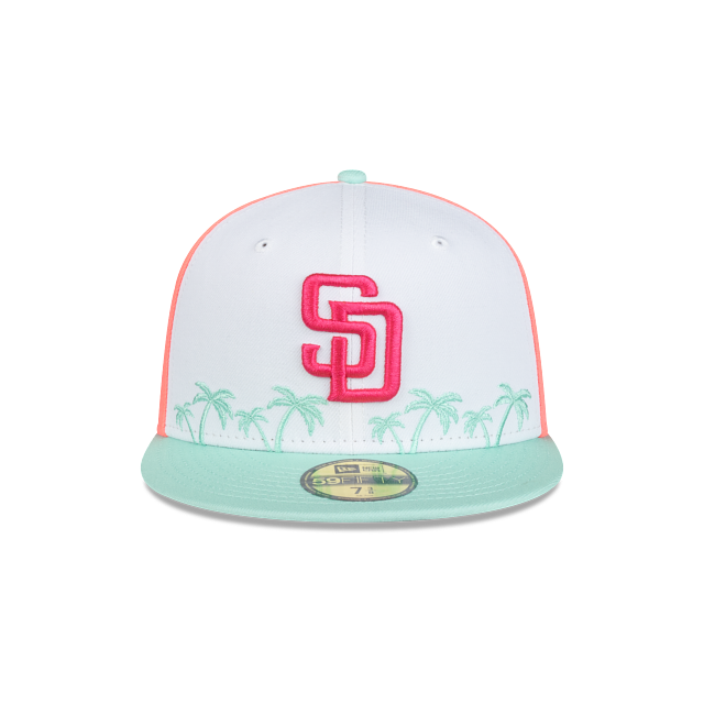 Inspirada en el jersey City Connect, esta gorra New Era 59FIFTY de San Diego Padres de la colección MLB City Connect Fan Pack extrae la originalidad de colores y elementos únicos vinculados a la ciudad circundante y presenta el logotipo de los Padres con palmeras bordado en los paneles frontales blancos que contrastan con un diseño multicolor, el MLB Batterman al reverso y el flag de New Era bordado en el lado izquierdo. Una gorra con orgullo. Cómprala ya.